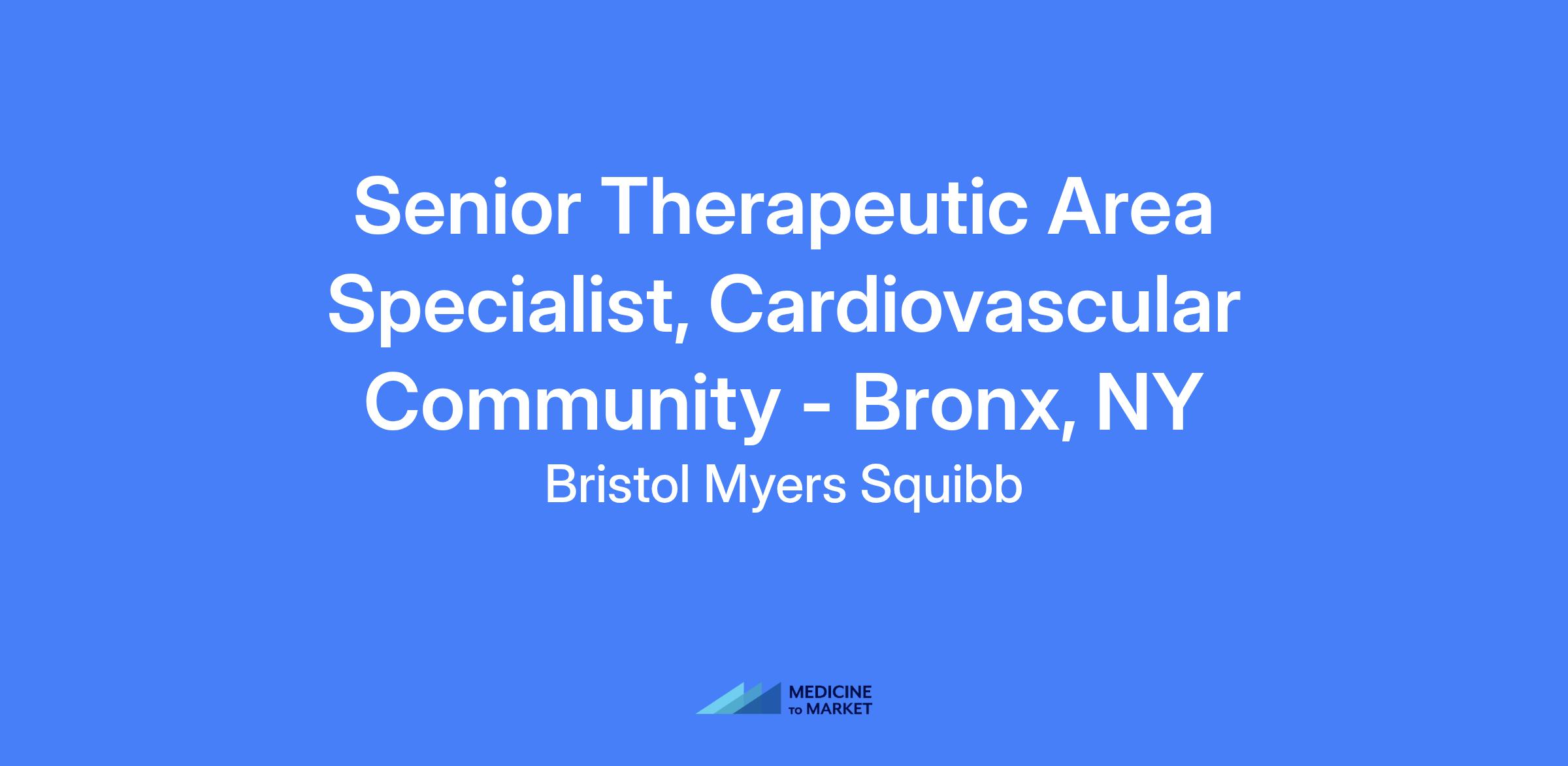 Senior Therapeutic Area Specialist, Cardiovascular Community - Bronx, NY. The TAS is a field-based role that focuses on driving demand for BMS medicines within their portfolio for appropriate patients, engaging health care providers with a differentiated customer experience, and maintaining scientific credibility across assigned products and therapeutic areas.