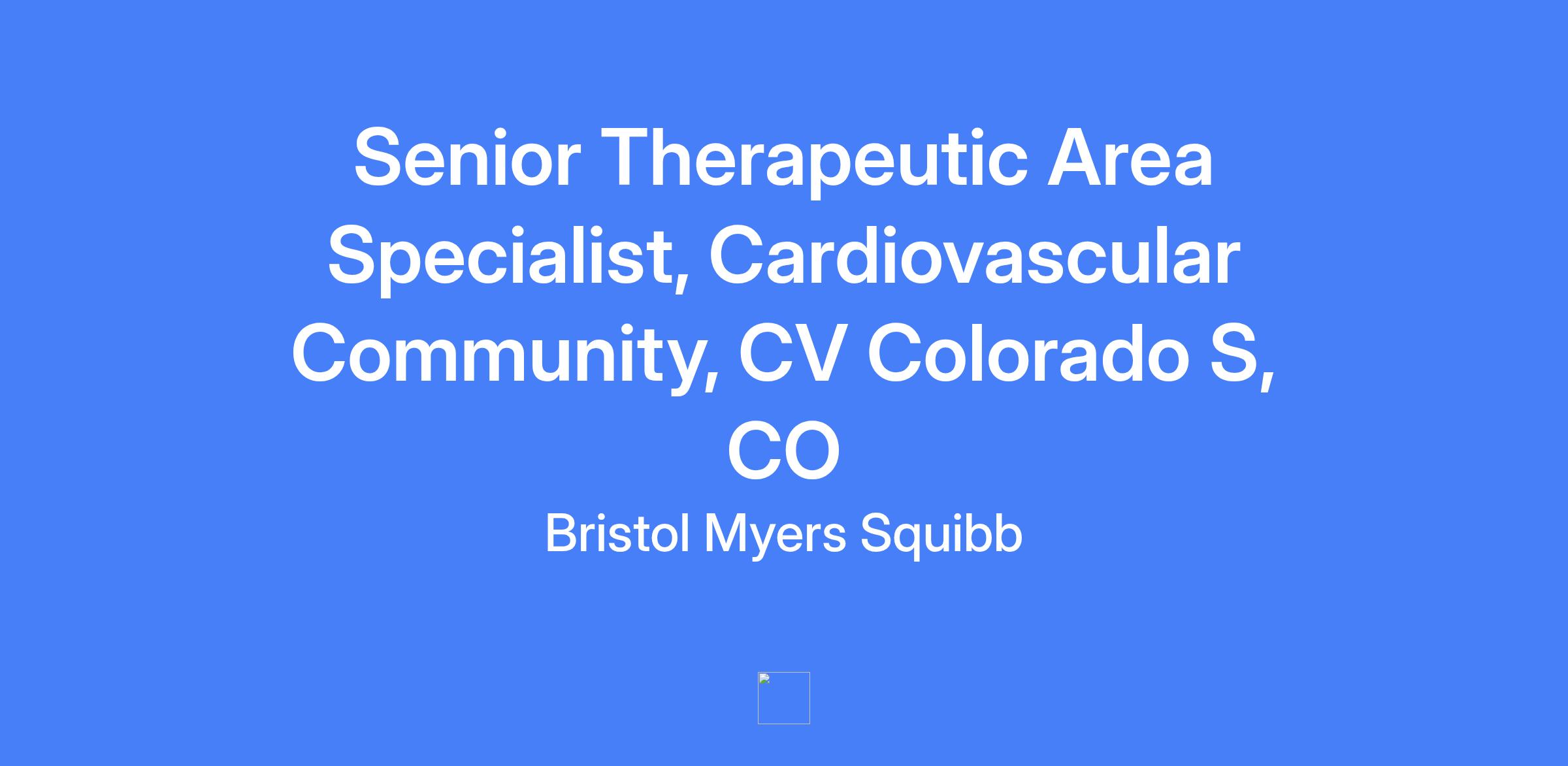 Senior Therapeutic Area Specialist, Cardiovascular Community, CV Colorado S, CO. Field-based role focused on driving demand for BMS medicines within the cardiovascular portfolio, engaging Health Care Providers with a differentiated, science-driven customer experience, and promoting appropriate use of products.