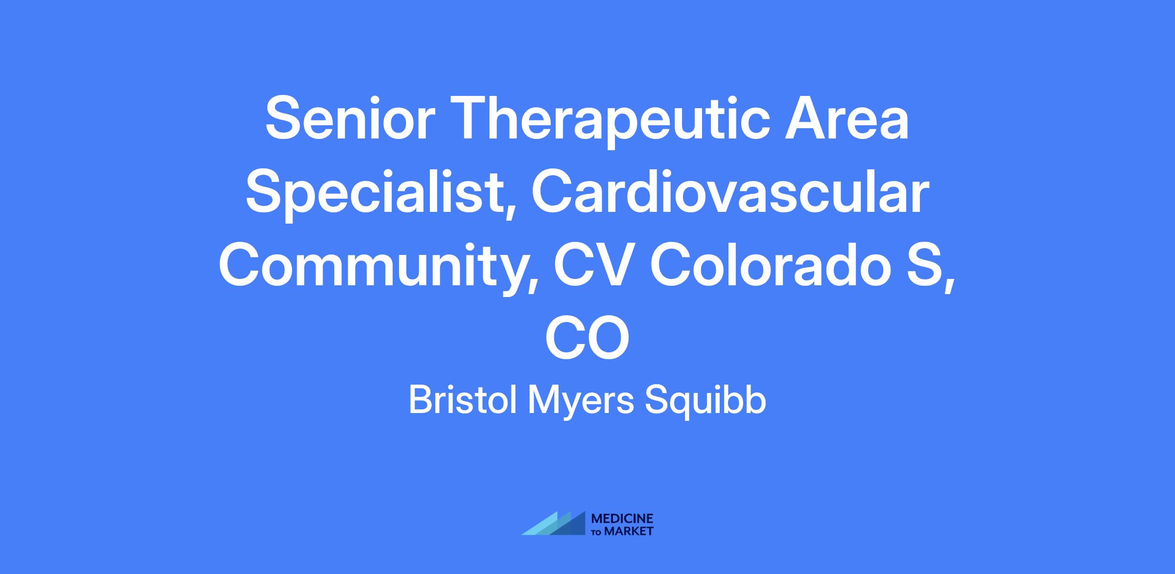 Senior Therapeutic Area Specialist, Cardiovascular Community, CV Colorado S, CO. Field-based role focused on driving demand for BMS medicines within the cardiovascular portfolio, engaging Health Care Providers with a differentiated, science-driven customer experience, and promoting appropriate use of products.