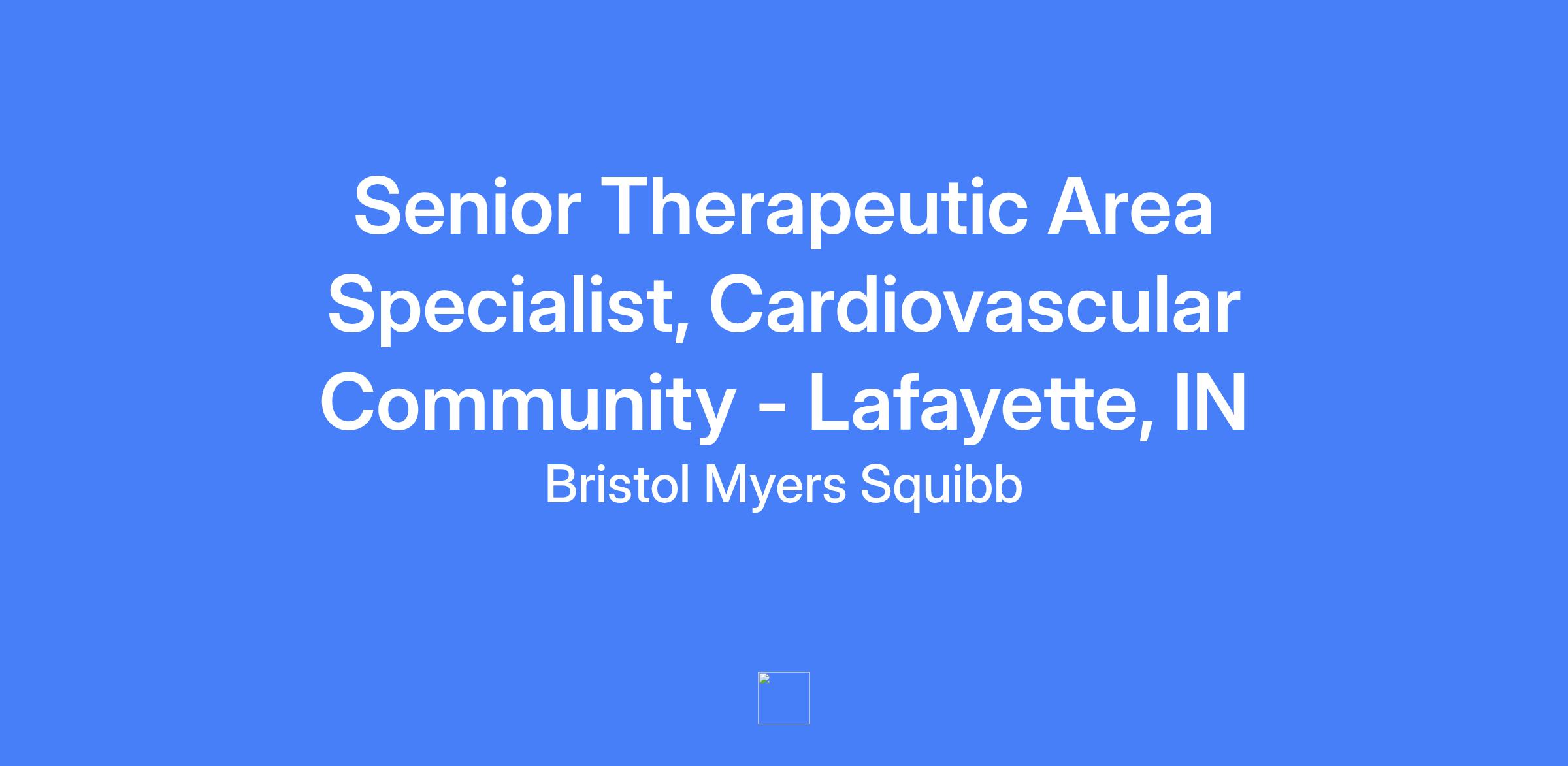 Senior Therapeutic Area Specialist, Cardiovascular Community - Lafayette, IN. Field-based role focused on driving demand for BMS medicines within the cardiovascular portfolio, engaging health care providers with a differentiated scientific dialogue, and delivering a superior customer experience while prioritizing safe and appropriate product use.