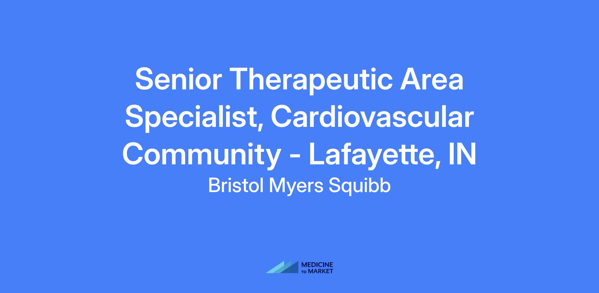 Senior Therapeutic Area Specialist, Cardiovascular Community - Lafayette, IN. Field-based role focused on driving demand for BMS medicines within the cardiovascular portfolio, engaging health care providers with a differentiated scientific dialogue, and delivering a superior customer experience while prioritizing safe and appropriate product use.