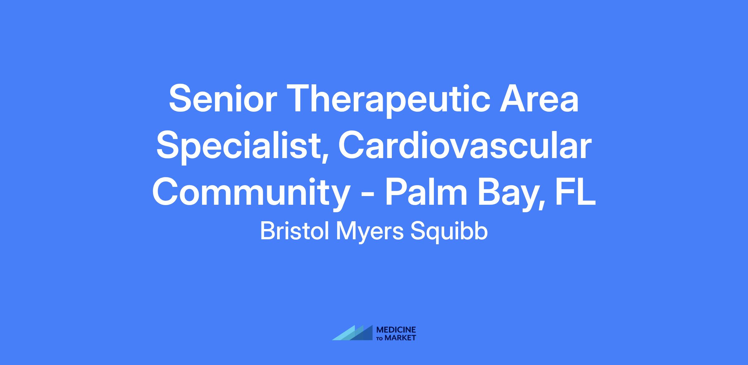 Senior Therapeutic Area Specialist, Cardiovascular Community - Palm Bay, FL. Field-based position focused on engaging Health Care Providers to drive adoption of BMS medicines, delivering scientifically accurate information, and building credible relationships within the cardiovascular portfolio.
