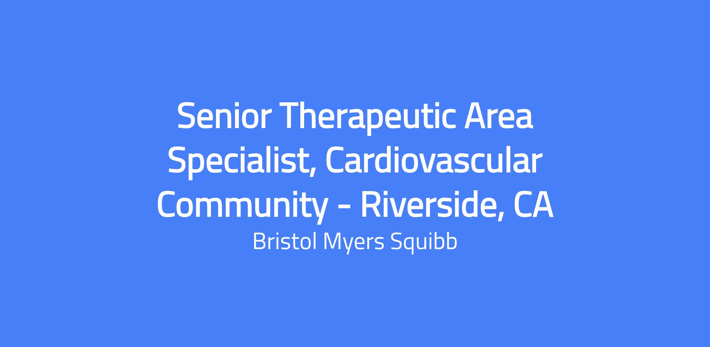 Position: Senior Therapeutic Area Specialist (TAS), Cardiovascular (Field), Riverside, CA