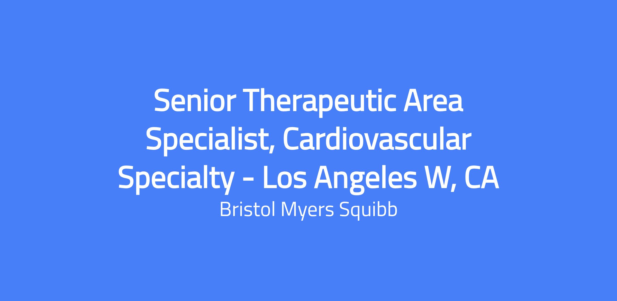 The Therapeutic Area Specialist (TAS) is a field-based role within a customer-centric model to drive adoption of Bristol Myers Squibb medicines and generate demand among appropriate patients. The TAS engages Health Care Providers (HCPs) with a differentiated Customer Experience (Cx), grounded in scientific dialogue and aligned with labeling. The role builds credibility with regional thought leaders and community-based physicians, office staff, and other patient-care stakeholders as the primary contact. The TAS collaborates with cross-functional partners to deliver a high-quality customer experience while prioritizing safe and appropriate use of BMS products and achieving business objectives. Location: Los Angeles W, CA.