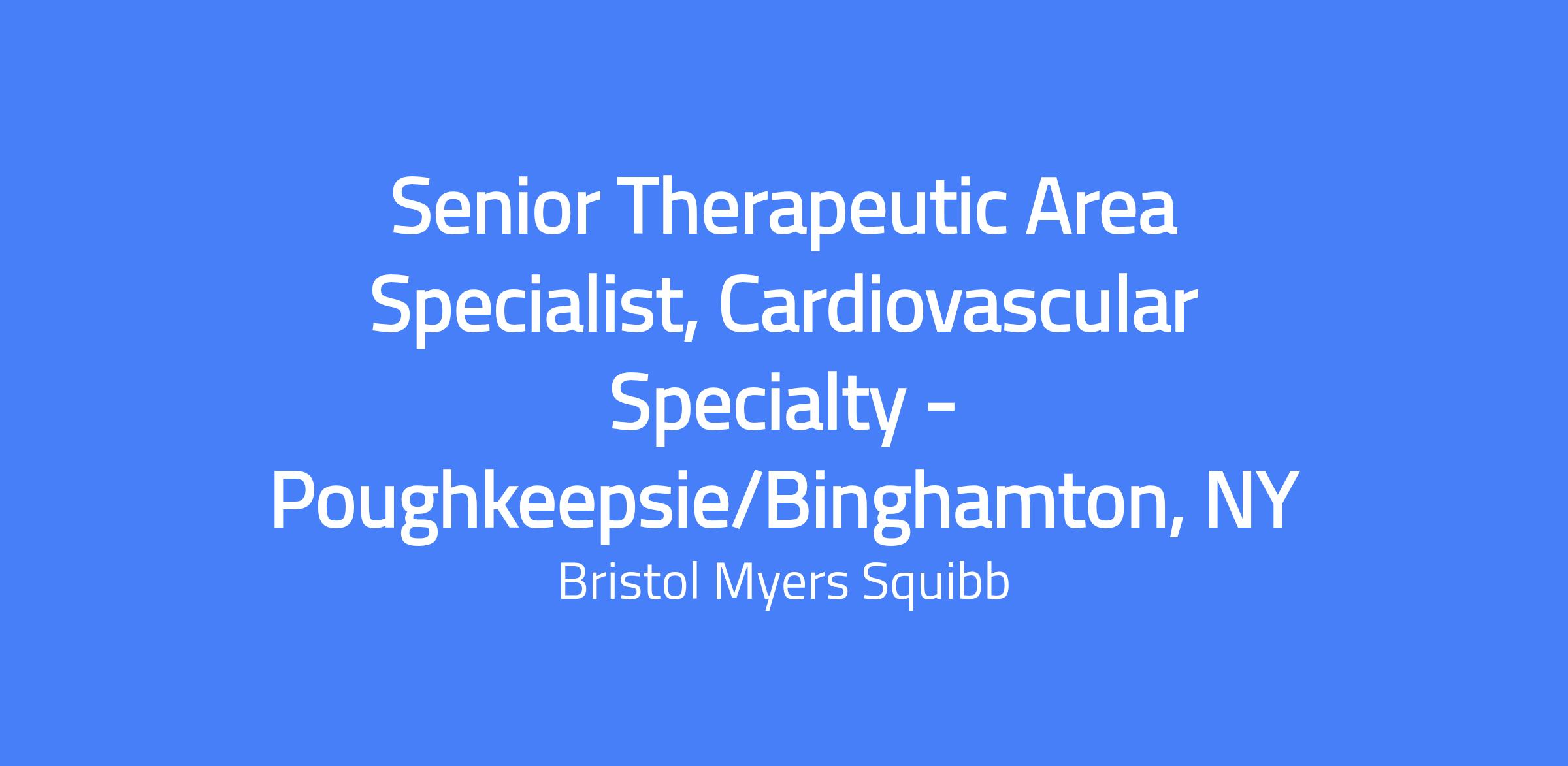 The Senior Therapeutic Area Specialist (TAS) Cardiovascular Specialty is a field-based role that drives demand for BMS medicines within an assigned portfolio, engaging Health Care Providers with a differentiated customer experience and scientific dialogue in line with product labeling. The TAS builds credibility with regional thought leaders and community-based physicians/HCPs, collaborates with internal teams to deliver a superior customer experience, and prioritizes safe and appropriate product use while aiming for strong business results. The role requires spending the majority of time in the field with external customers.