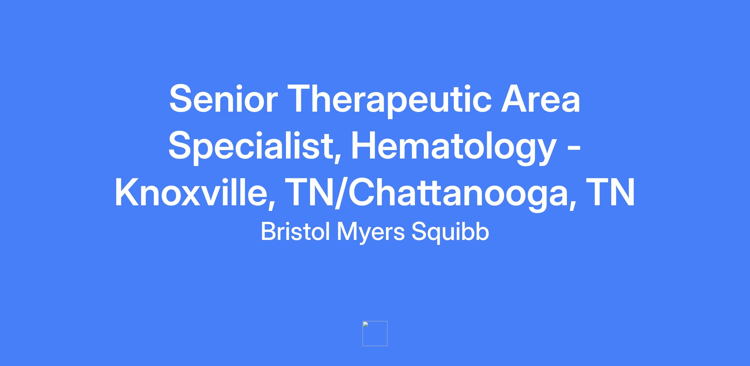 Senior Therapeutic Area Specialist, Hematology - Knoxville, TN/Chattanooga, TN. Field-based role focused on driving demand for BMS medicines, engaging Health Care Providers with a differentiated experience, and promoting appropriate use of products within a defined territory. This position requires 100% time in the field with external customers.