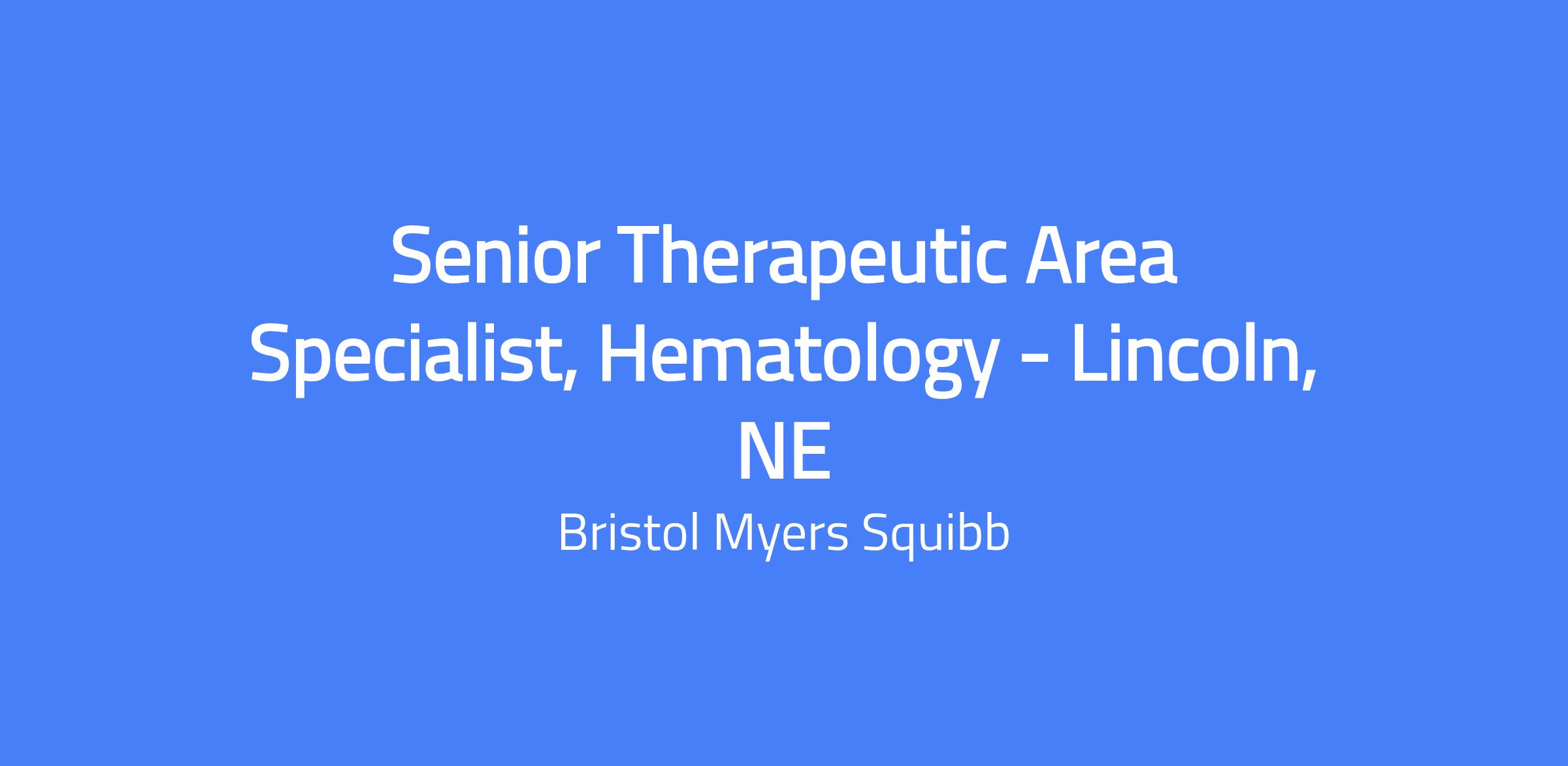 Senior Therapeutic Area Specialist, Hematology – Lincoln, NE. Promotes hematology products, supports physicians and healthcare professionals in the assigned territory, and drives sales in a complex scientific environment. Works with cross-functional teams to achieve territory goals and deliver patient-focused solutions.