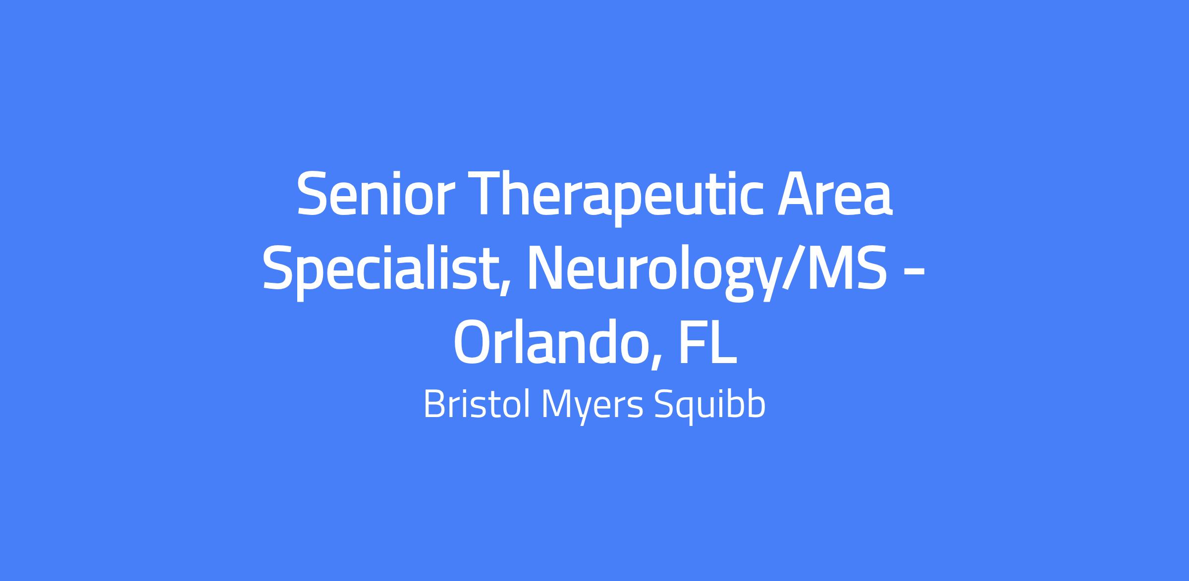 Senior Therapeutic Area Specialist (TAS), Neuroscience/MS (Field) – Orlando, FL (100% field time)