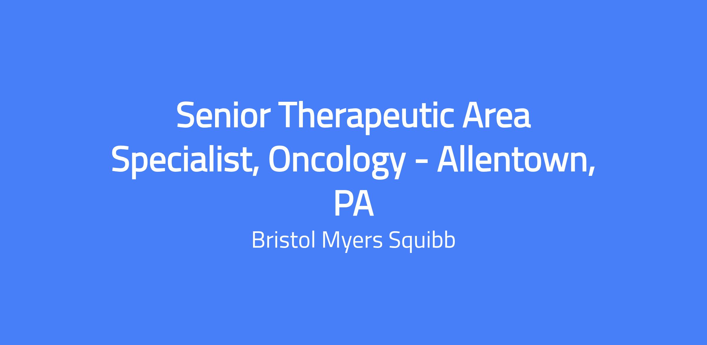 Senior Therapeutic Area Specialist, Oncology, based in Allentown, PA. This field-based role drives demand and adoption of Bristol Myers Squibb medicines by delivering a scientifically grounded, differentiated Customer Experience to Health Care Providers. You will build and maintain credibility with regional thought leaders and community-based physicians/HCPs, collaborate with cross-functional partners, and prioritize safe and appropriate use of BMS products while achieving business results. The TAS spends 100% of time in the field with external customers.
