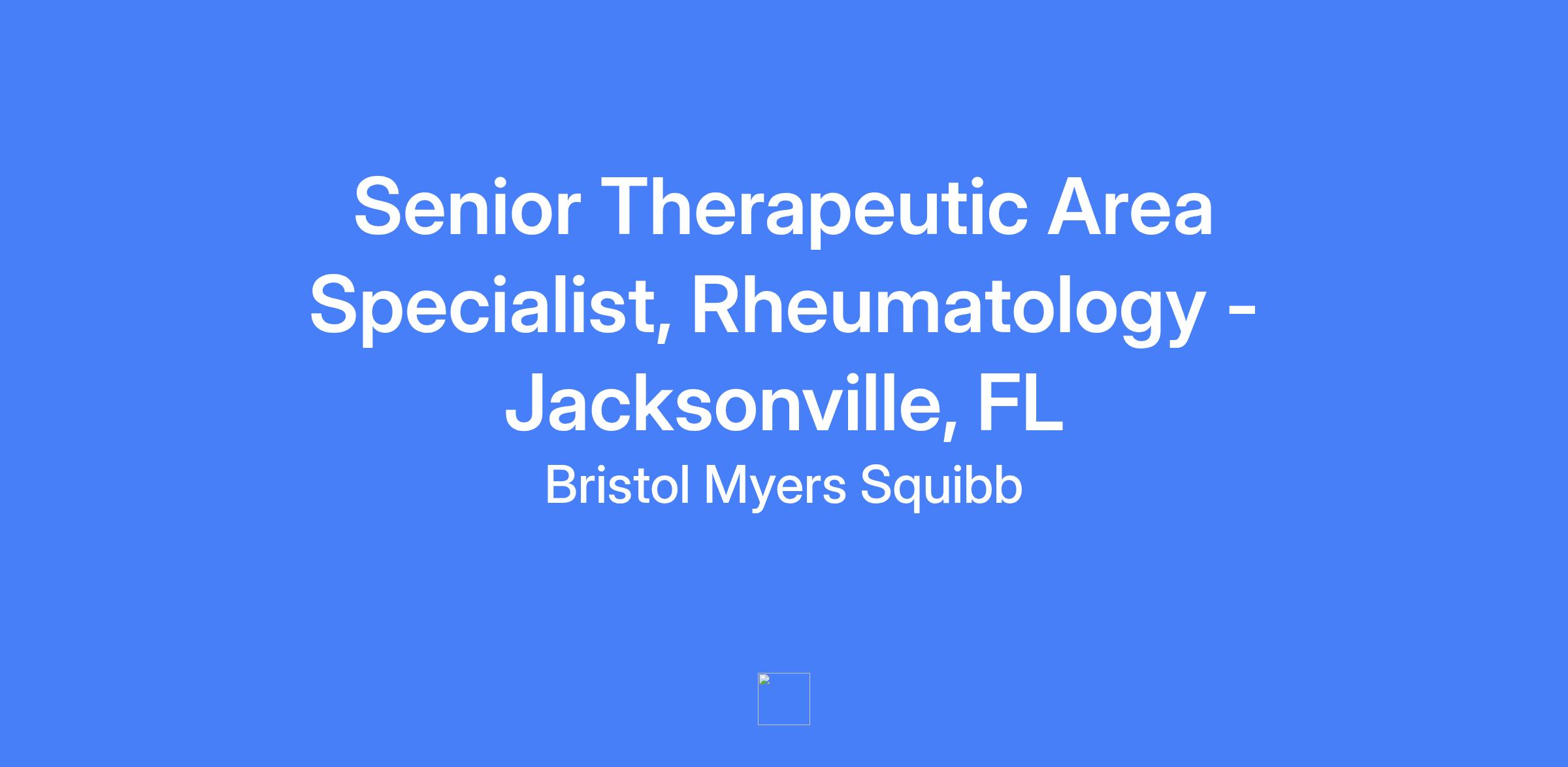 Senior Therapeutic Area Specialist, Rheumatology - Jacksonville, FL. Field-based role accountable for appropriate adoption of BMS Rheumatology portfolio and generating demand through differentiated scientific engagement with health care providers, thought leaders, and community-based physicians.