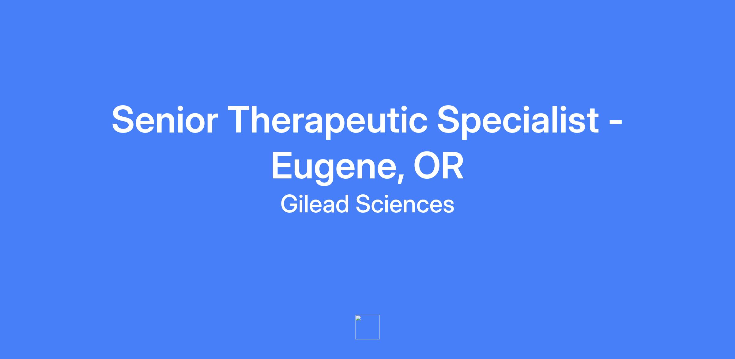 Senior Therapeutic Specialist — Eugene, OR. Represent Gilead's products and services to a defined customer base within a specified geographic area, focusing on generating and growing sales through account management, in-person engagement with healthcare practices, and strategic partnerships.