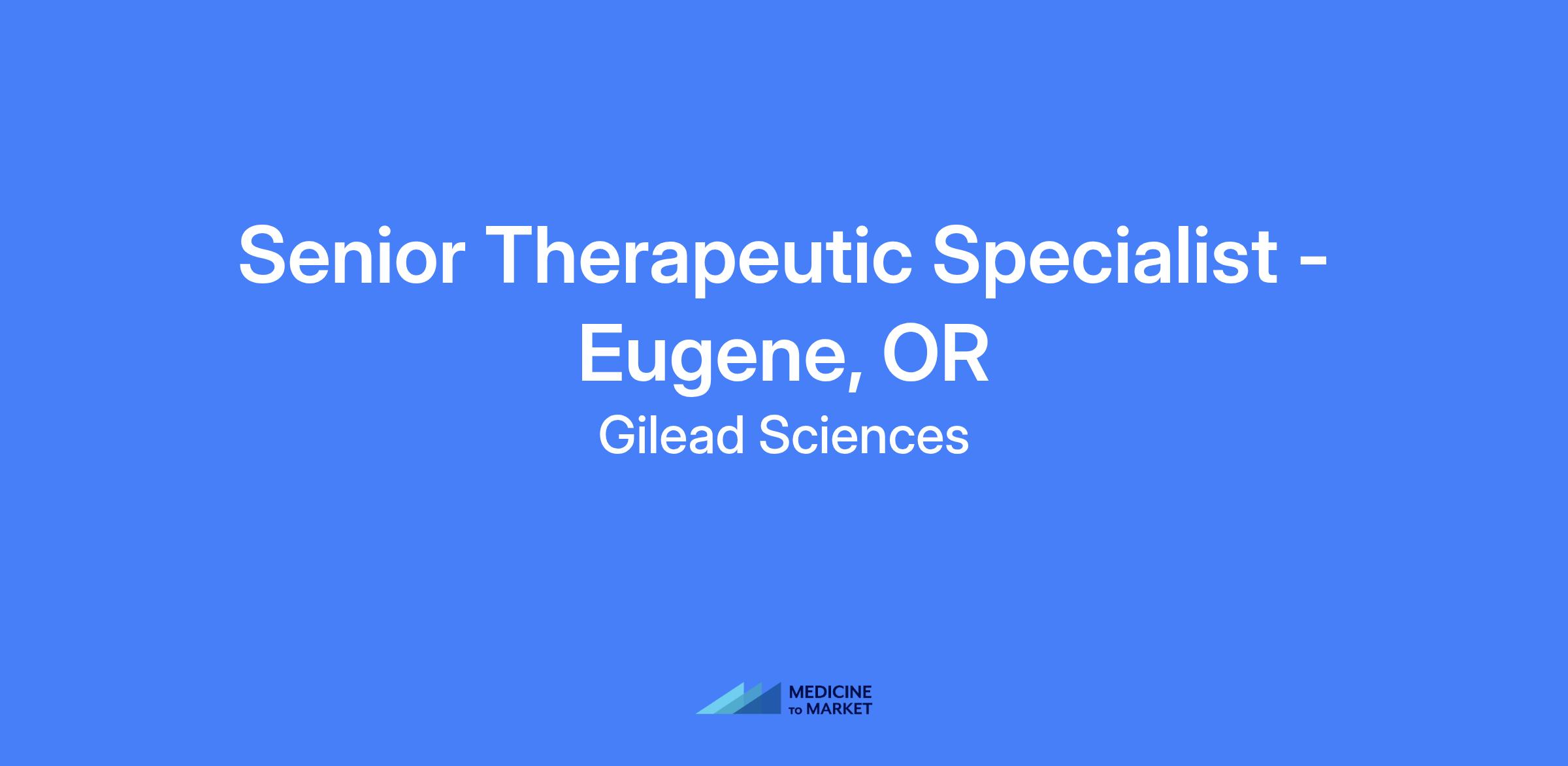 Senior Therapeutic Specialist — Eugene, OR. Represent Gilead's products and services to a defined customer base within a specified geographic area, focusing on generating and growing sales through account management, in-person engagement with healthcare practices, and strategic partnerships.