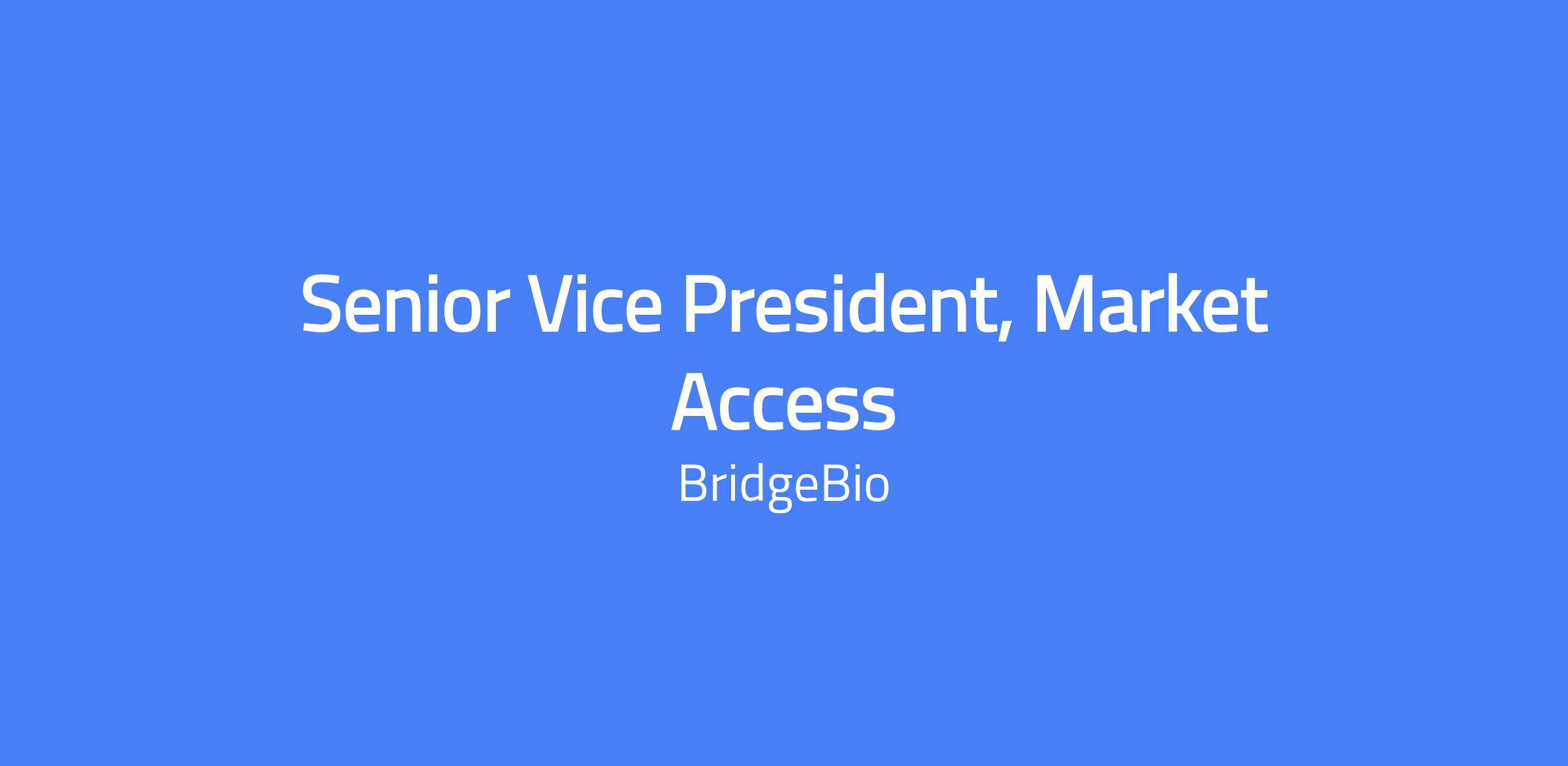 The Senior Vice President of Market Access will lead BridgeBio’s U.S. market access strategy, including payer and account strategy, HEOR, pricing, contracting, reimbursement, distribution, and patient support programs. The role focuses on optimizing patient access, reimbursement, availability, and affordability for the U.S. portfolio across rare disease and specialty therapies. The SVP will be a key member of the Commercial Leadership Team and partner across the organization to advance access and patient outcomes.