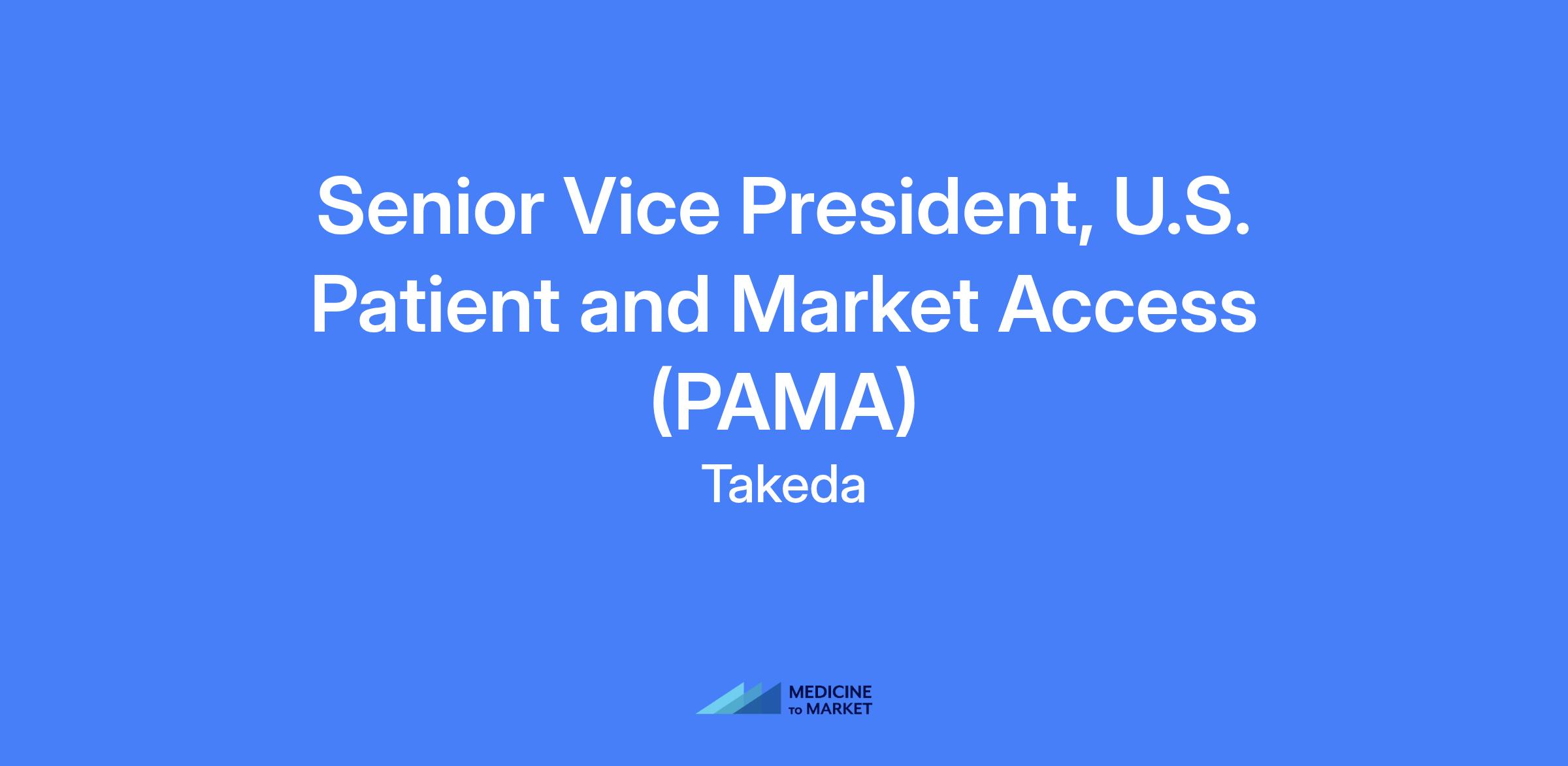 Senior Vice President of U.S. Patient and Market Access (PAMA) will lead the U.S. Bankable Market Access unit to optimize patient access, reimbursement, availability, and affordability for TakedaβΓΓ΄s US portfolio. The role serves on the USBU Executive Leadership Team and the broader global Takeda Leadership Team, directing a diverse team and shaping market access strategy in the US. Location: Boston, MA.