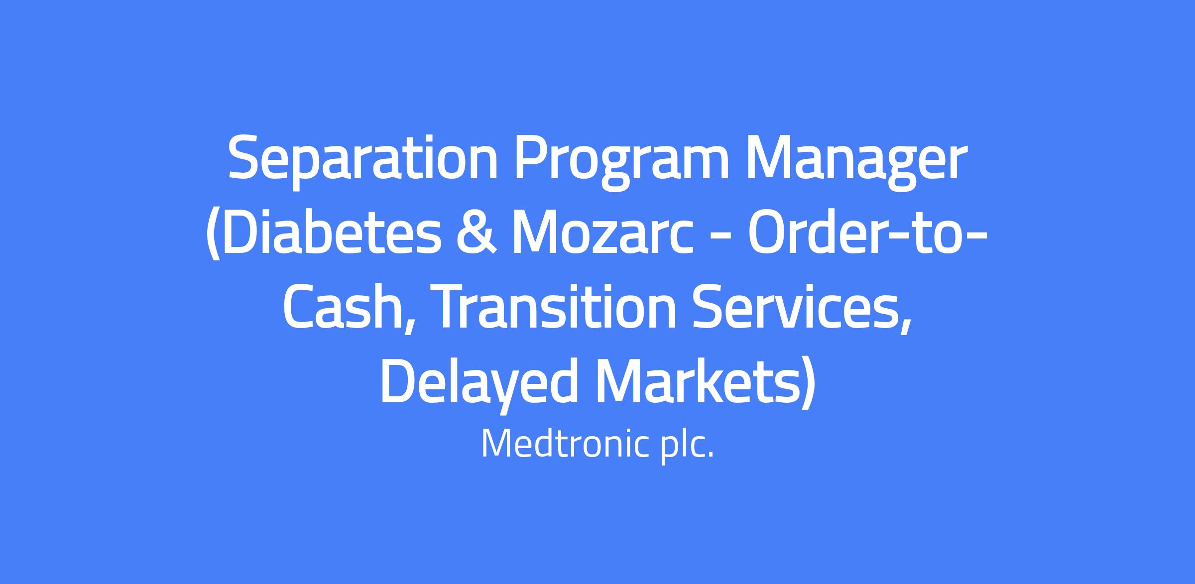 We anticipate the application window for this opening will close on - 17 Apr 2026 At Medtronic you can begin a life-long career of exploration and innovation, while helping champion healthcare access and equity for all. You’ll lead with purpose, breaking down barriers to innovation in a more connected, compassionate world. A Day in the Life At Medtronic, we push the limits of what technology, therapies, and services can do to help alleviate pain, restore health, and extend life. This role serves as a flexible program leader within the Separation Management Office (SMO), supporting the successful separation of Medtronic’s Diabetes business and the divestiture of the Mozarc business, by driving critical operational priorities across Order-to-Cash, Procure-to-pay, Transition Services Agreement (TSA) exits, and delayed market readiness. As part of a complex, cross-functional program spanning operational, commercial, and supply chain functions, this role will lead Order-to-Cash (O2C) separation activities across assigned geographies while also supporting broader separation priorities as needed. The role will lead planning and execution of TSA exit activities and support delayed market close requirements to ensure operational readiness and continuity following separation. This individual will partner closely with separation teams and enabling functions across Medtronic to coordinate execution, manage critical interdependencies, and drive progress across the broader separation program. At Medtronic, we bring bold ideas forward with speed and decisiveness to put patients first in everything we do. In-person exchanges are invaluable to our work. We’re working a minimum of 4 days a week onsite as part of our commitment to fostering a culture of professional growth and cross-functional collaboration as we work together to engineer the extraordinary.  Responsibilities may include the following and other duties may be assigned. Lead and drive cross-functional program activities supporting the separation of Medtronic’s Diabetes business and the divestiture of the Mozarc business, with accountability for planning, execution, and delivery of key operational milestones. Support Order-to-Cash (O2C) separation activities across assigned geographies, ensuring operational readiness and continuity of commercial and supply chain processes through separation milestones. Lead Procure-to-Pay (P2P) separation activities, including assessing current-state processes, defining the future-state operating model, and executing the transition of purchasing, vendor management, invoicing, and payment processes to ensure business continuity and compliance throughout the separation. Support coordination, execution, and ongoing management of Transition Services Agreement (TSA) activities across relevant functions, including governing service delivery, managing changes, and planning and executing TSA exits. Manage planning and execution for delayed market exits, including coordinating cross-functional readiness, regulatory and operational requirements, and interim operating models to ensure continuity of business operations until separation is achieved. Develop and manage integrated program plans spanning multiple workstreams, including Supply Chain, Manufacturing, Planning, Distribution, Quality, Regulatory, Finance, IT, Legal, and Commercial Operations. Direct day-to-day execution across matrixed teams by managing scope, timelines, resources, dependencies, and deliverables to ensure successful program outcomes. Provide program leadership for Supply Chain–related separation activities, including manufacturing operations, inventory, planning, distribution, supplier transitions, and continuity of product supply. Support planning and execution for delayed market close activities to ensure operational readiness and a smooth transition to the future operating model following transaction milestones. Establish and maintain program governance, including decision forums, escalation paths, and status reporting. Identify, assess, and actively manage program risks and issues; develop mitigation strategies and drive timely resolution. Partner closely with functional and business leaders to ensure alignment with strategic objectives, operational requirements, and regulatory obligations. Establish meaningful metrics and dashboards to track program progress, readiness, and performance across workstreams. Prepare and deliver clear, concise updates for senior leadership and program stakeholders. Coordinate with internal teams, counterpart separation teams, and external advisors to ensure integrated execution across the broader separation program. Minimum Requirements: Bachelor’s degree with 5+ years of relevant experience in Supply Chain, Business Development, Finance, Operations, or a related field. Nice to Have: Experience leading complex, cross‑functional projects or programs with multiple workstreams. Strong background or hands‑on experience in Supply Chain Operations, Manufacturing, Planning, Distribution, or related operational functions. Experience supporting or leading business transformation initiatives such as carve‑outs, separations, divestitures, or operating model changes. Experience working in a regulated environment (medical device, pharmaceutical, healthcare, or similar). Demonstrated ability to lead in a matrixed organization and influence without direct authority. Strong organizational, analytical, and problem‑solving skills. Excellent written and verbal communication skills, including experience preparing materials for senior leaders. Ability to manage ambiguity and shifting priorities in a fast‑paced environment. PMP or other project management certification preferred. Experience working across global teams and geographies preferred. Familiarity with enterprise systems (e.g., ERP, planning, quality systems) a plus. For Baccalaureate degrees earned outside of the United States, a degree that satisfies
