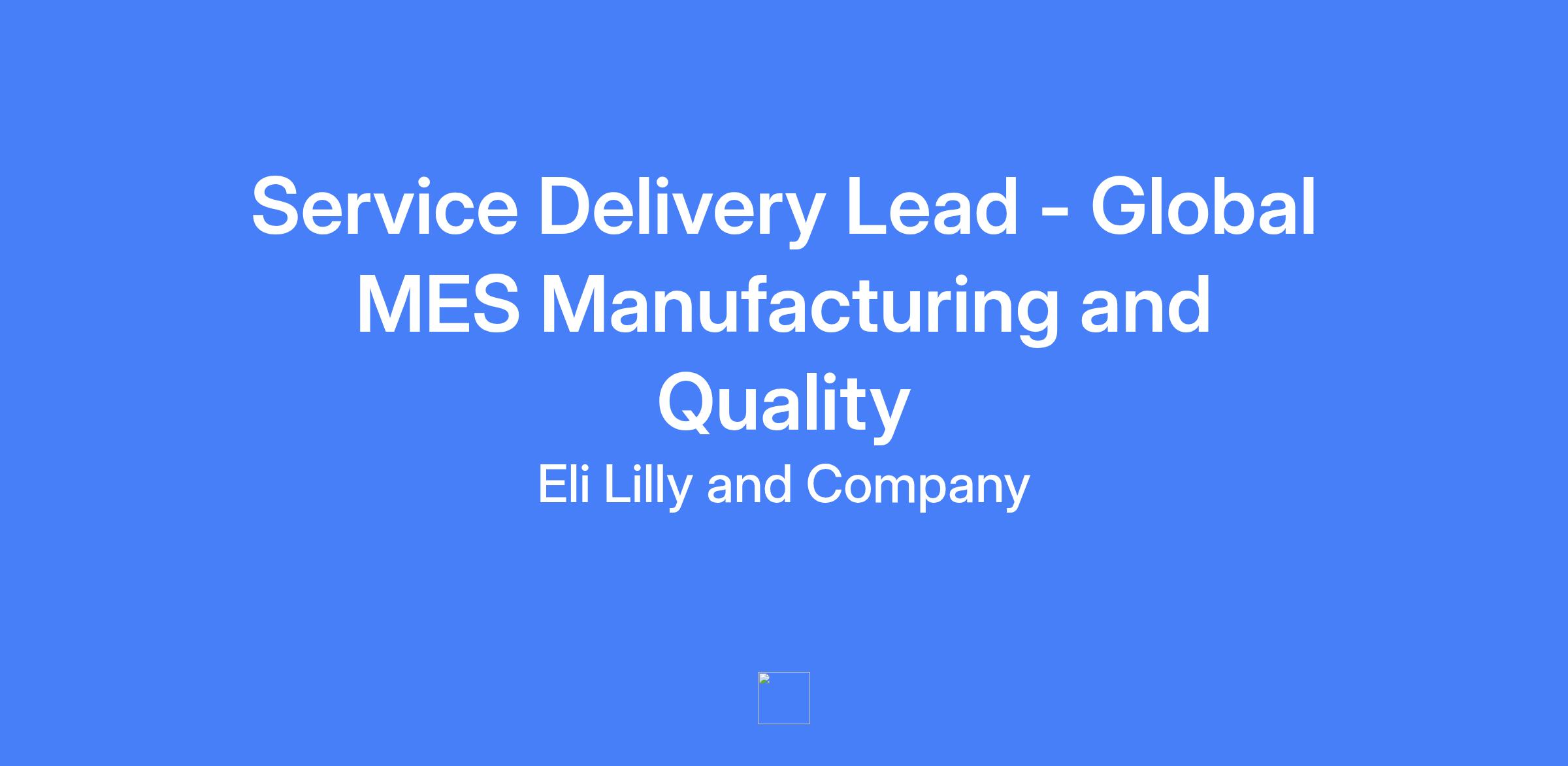 Service Delivery Lead โ Global MES Manufacturing and Quality. Drive operational excellence in service delivery across MES services for Lillyโs Manufacturing and Quality IT organization, delivering end-to-end services to support business partners and end-users.