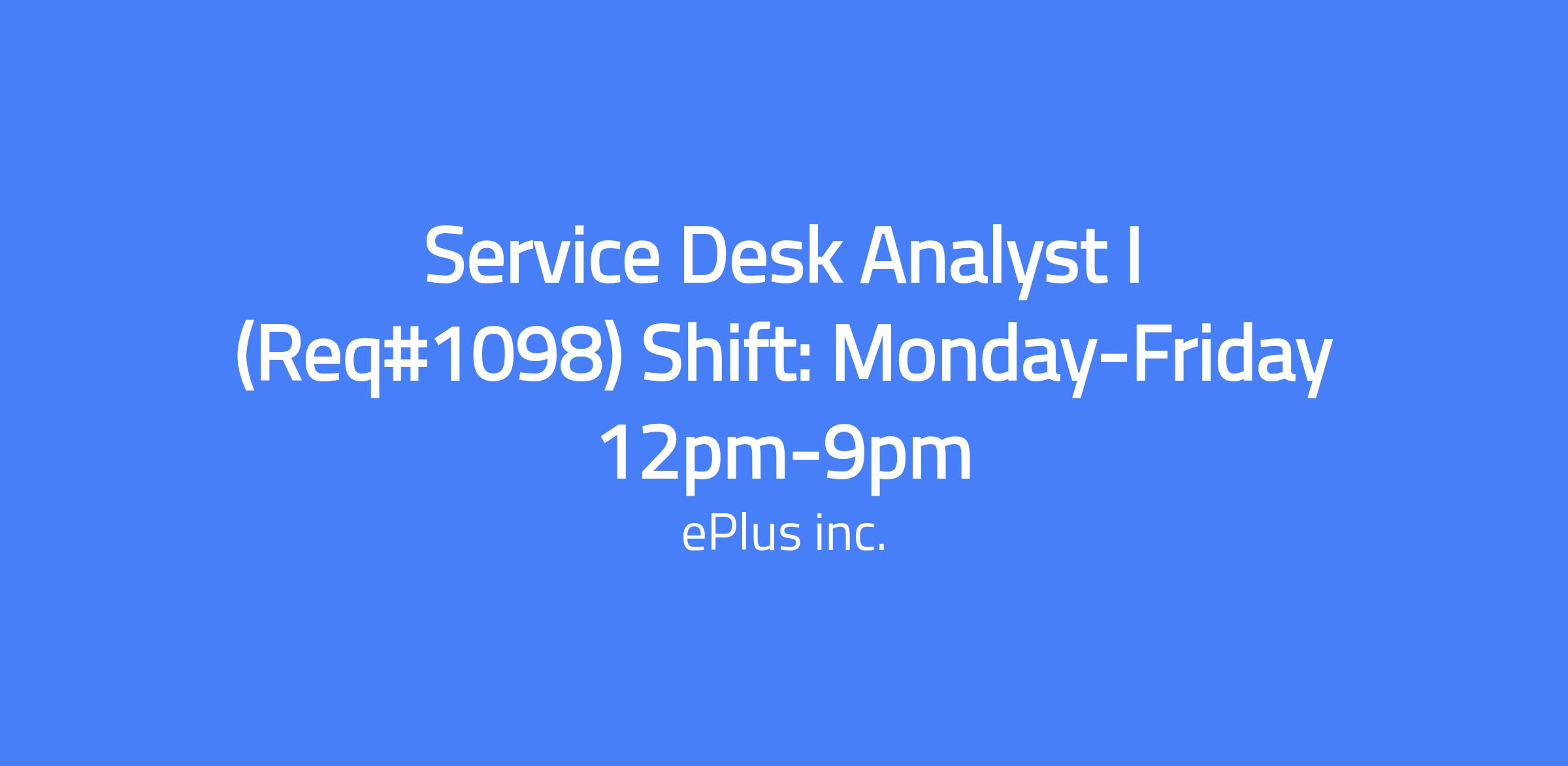 As a Service Desk Analyst I, you will be responsible for answering technical support calls and responding to emails from our customers, providing Level 1 technical assistance directly to the ePlus customer base. You will provide accurate and efficient problem diagnosis, description and tracking through resolution.