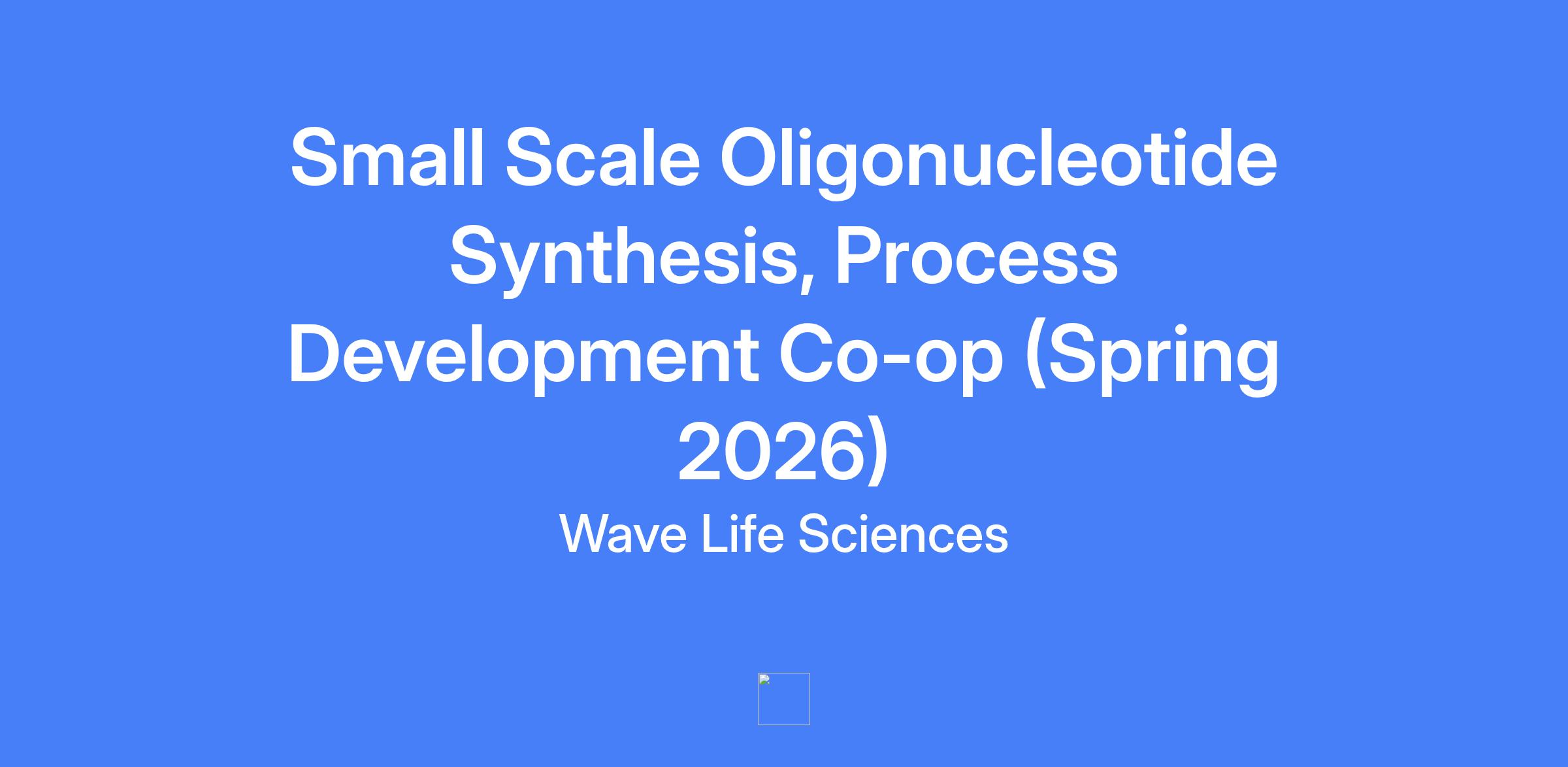 Small Scale Oligonucleotide Synthesis, Process Development Co-op (Spring 2026) at Wave Life Sciences – Lexington, MA. This role involves supporting oligonucleotide synthesis, formulation, purification, and analysis to meet Discovery-related requests in a fast-paced biotech environment. Ideal for students with strong organizational skills and attention to detail pursuing a science program.