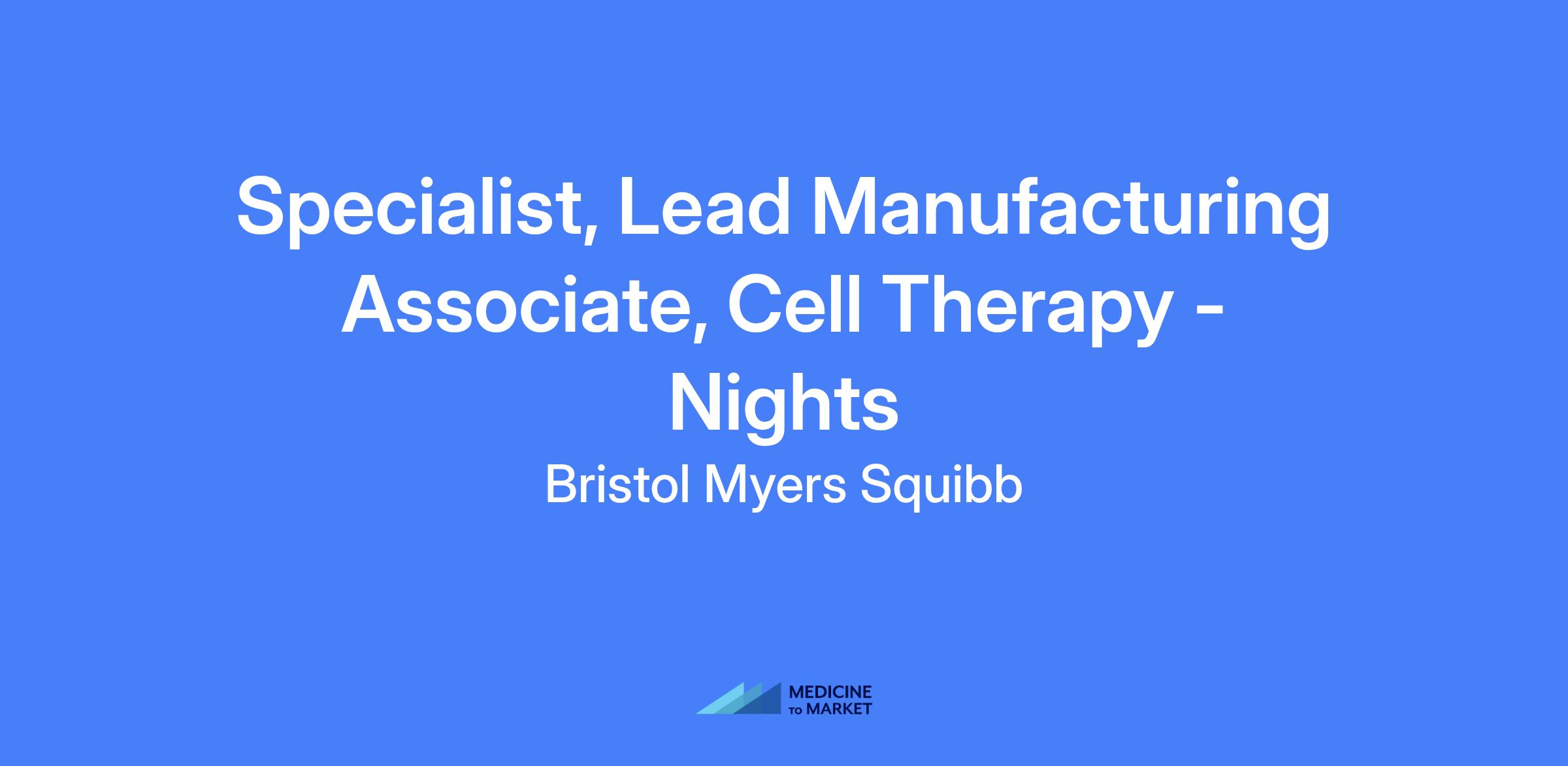 Specialist, Lead Manufacturing Associate, Cell Therapy - Nights. Lead Manufacturing Associate supervises the shift for manufacturing of human blood derived components in a cGMP cleanroom, supports deviations and investigations, and serves as a qualified trainer for all buckets of operation. Works with the Quad Manager to ensure production goals and compliance are met on a Sunday-Wednesday overnight shift.