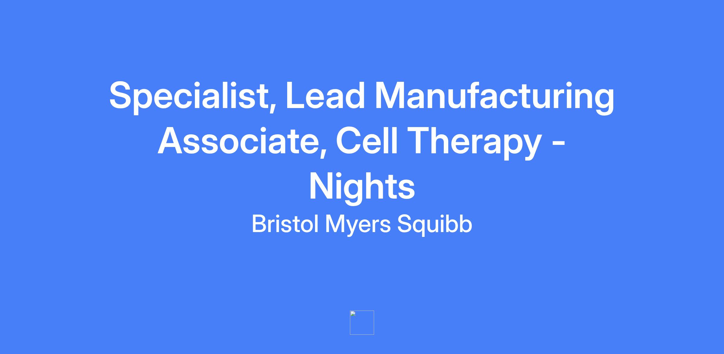 Specialist, Lead Manufacturing Associate, Cell Therapy - Nights. Lead Manufacturing Associate supervises the shift for manufacturing of human blood derived components in a cGMP cleanroom, supports deviations and investigations, and serves as a qualified trainer for all buckets of operation. Works with the Quad Manager to ensure production goals and compliance are met on a Sunday-Wednesday overnight shift.