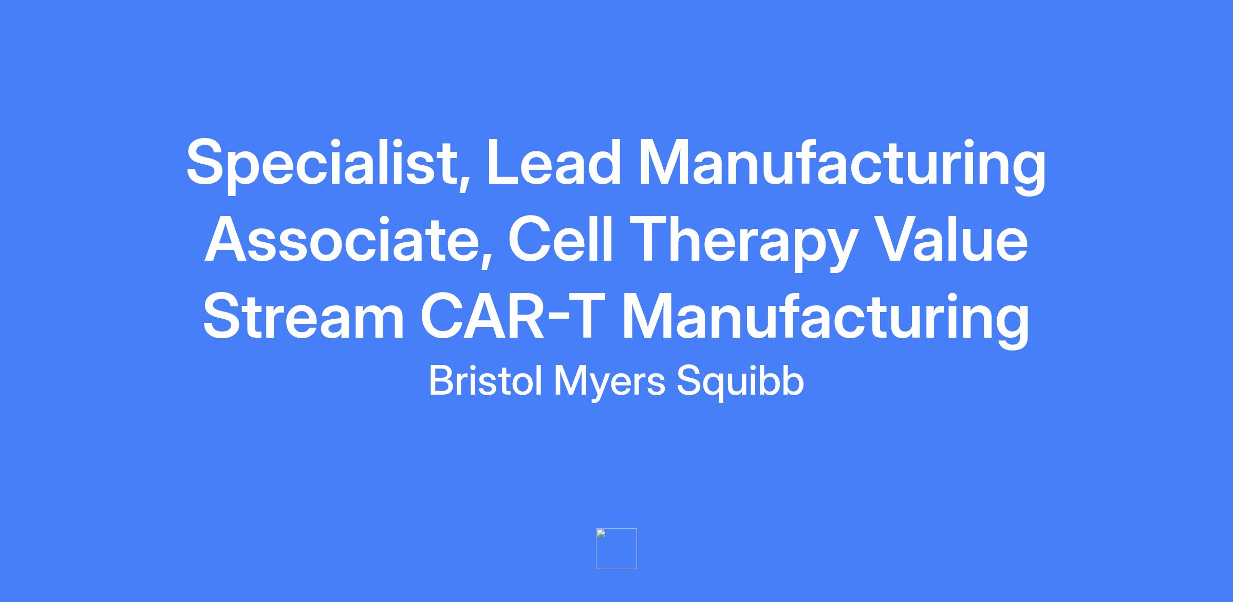 Specialist, Lead Manufacturing Associate, Cell Therapy Value Stream CAR-T Manufacturing. Lead manufacturing operations for novel cell therapy programs, supporting routine manufacturing operations with a focus on GMP compliance, safety, and quality. Collaborate with cross-functional teams to ensure on-time production and continuous improvement.