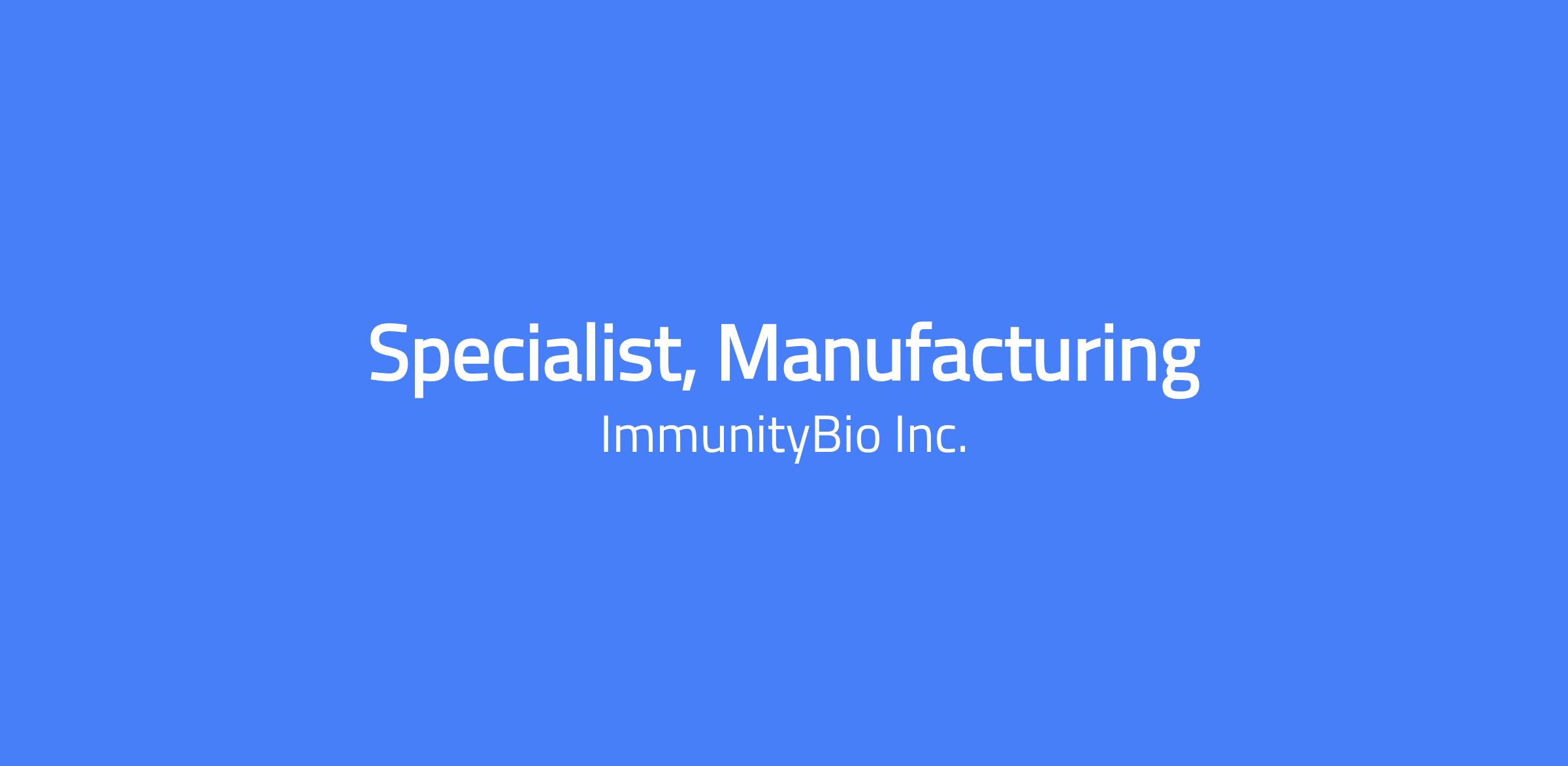 Company Overview ImmunityBio, Inc. (NASDAQ: IBRX) is a commercial-stage biotechnology company developing cell and immunotherapy products that are designed to help strengthen each patient’s natural immune system, potentially enabling it to outsmart the disease and eliminate cancerous or infected cells. We envision a day when we no longer fear cancer, but can conquer it, thanks to the biological wonder that is the human immune system. Our scientists are working to develop novel therapies that harness that inherent power by amplifying both branches of the immune system, attacking cancerous or infected cells today while building immunological memory for tomorrow. The goal: to reprogram the patient’s immune system and treat the host rather than just the disease. Why ImmunityBio? • ImmunityBio is developing cutting-edge technology with the goal to transform the lives of patients with cancer and develop next-generation therapies and vaccines that complement, harness and amplify the immune system to defeat cancers and infectious diseases. • Opportunity to join a publicly traded biopharmaceutical company with headquarters in Southern California. • Work with a collaborative team with the ability to work across different areas of the company. • Ability to join a growing company with professional development opportunities. Position Summary The Specialist, Manufacturing is responsible for leading and forwarding biological manufacturing. All functions and roles of the manufacturing process are required to be performed with adherence to cGMP and GDP to ensure successful, quality operations. The role participates in training and leading others as well as in fully supporting the scale up and transfer of new products. Essential Functions Performs manufacturing activities according to cGMP, including batch record execution, product and equipment changeover, troubleshooting manufacturing equipment, issue resolution under limited supervision Lead process operations in accordance to dynamic production timeline Lead safety protocols and cGMP compliance in manufacturing areas. Investigate and resolve problems, identifying root causes, and proposing process improvements through clear communication Perform aseptic processing operations. Operate manufacturing equipment and their operating systems. Operate and may maintain in-process production schedules. Develop, author and revise operational and equipment MBRs and SOPs Maintain gowning qualification status and as needed participates in annual media simulation fills as required. Review manufacturing documentation following good documentation practices Perform process monitoring, including manipulation of databases, documents and/or spreadsheets to support business reporting requirements. Collaborate within department, cross-functionally and with supporting areas to meet objectives, cross-train and support other areas. Contribute to and help develop process improvement initiatives. Ensure that equipment and materials are ready and available for production runs. Maintain and sustain personal training profile requirements. Facilitates keeping training profiles up to date. Support investigations, CAPA and change control procedures. Responsible for performing On-The-Job training of manufacturing operators in areas of expertise and supporting training for trainees. Prepare daily manufacturing schedules. Leads manufacturing operational teams to meet on-time schedule requirements. Performs ad-hoc and cross-functional projects as assigned to support business needs and provide developmental opportunities. Education & Experience Bachelor’s degree in chemical engineering, genetics, molecular biology, biotechnology, microbiology, biochemistry, or a related field required. 4+ years of relevant industry or research experience required. 2+ years’ Bio-Manufacturing experience required. GMP experience required. Knowledge, Skills, & Abilities Strong skills in preparing reports with Microsoft Word, preparing, and updating Excel spreadsheets and presentations. Able to effectively author and revise Standard Operating Procedures (SOPs) and Manufacturing Batch Records (MBRs). Ability to problem solve using continuous improvement tools to identify problems, determine root causes, subsequent solutions and bring about the solution and improvement. Ability to present cross functionally to convey information and findings clearly, professionally, efficiently, and effectively. Attention to detail, cleanliness, physical and mental flexibility. Good perception to implement what has been learned, following guidelines precisely. Understanding and application of safety and quality requirements. Knowledge of cGMP and good documentation processes. Ability to successfully work in a team environment with good communication skills. Hands on approach to learned skills. Team player with good communication skills. Ability to read, understand and apply Standard Operating Procedures (SOPs) and Manufacturing Batch Records (MBRs). Working Environment / Physical Environment This position works onsite across ImmunityBio sites in Southern California. This position works in a lab environment. Must have ability to perform work while wearing the appropriate gowning material for cleanroom environments and work under aseptic conditions in a class 100 environment (BSC). Ability to work weekends occasionally to support the dynamic production schedule and relevant timelines. Ability to manage up to fifty (50) pounds at a time and stand for extended periods of time while wearing appropriate cleanroom gowning material and appropriate personal protective equipment is required Travel between multiple manufacturing locations as needed. This position is eligible for a discretionary bonus and equity award. The hourly base pay range for this position is below. The specific rate will depend on the successful candidate’s qualifications, prior experience as well as geographic location. $37.00 (entry-level qualifica