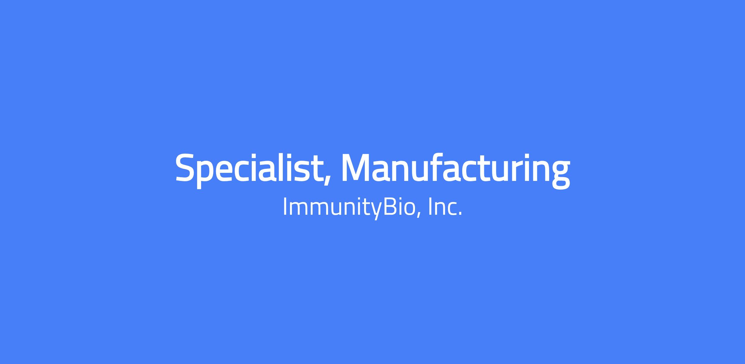 The Specialist, Manufacturing is responsible for leading and forwarding biological manufacturing. All functions and roles of the manufacturing process are required to be performed with adherence to cGMP and GDP to ensure successful, quality operations. The role participates in training and leading others as well as in fully supporting the scale up and transfer of new products.