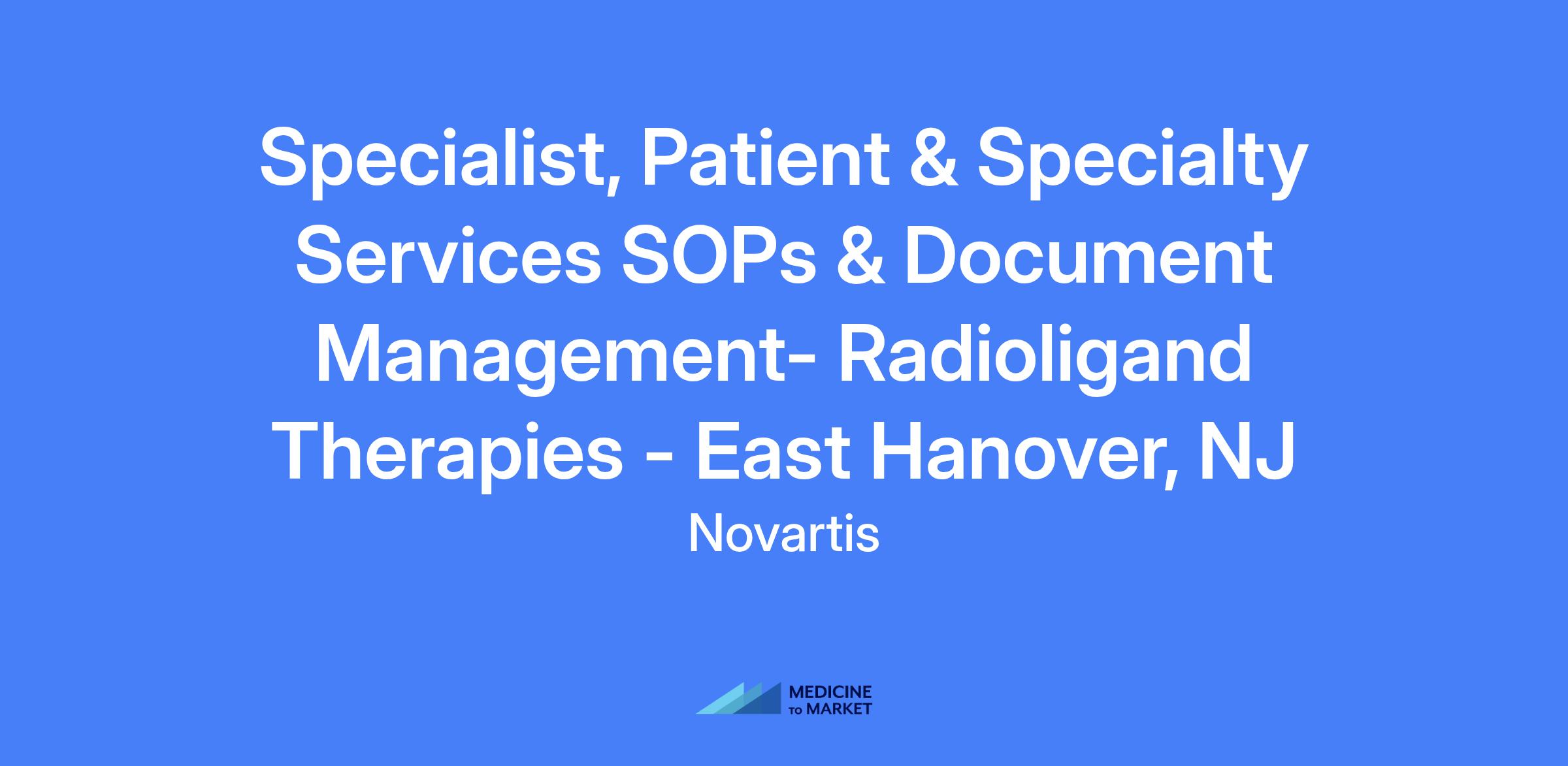 Specialist, Patient & Specialty Services SOPs & Document Management- Radioligand Therapies - East Hanover, NJ