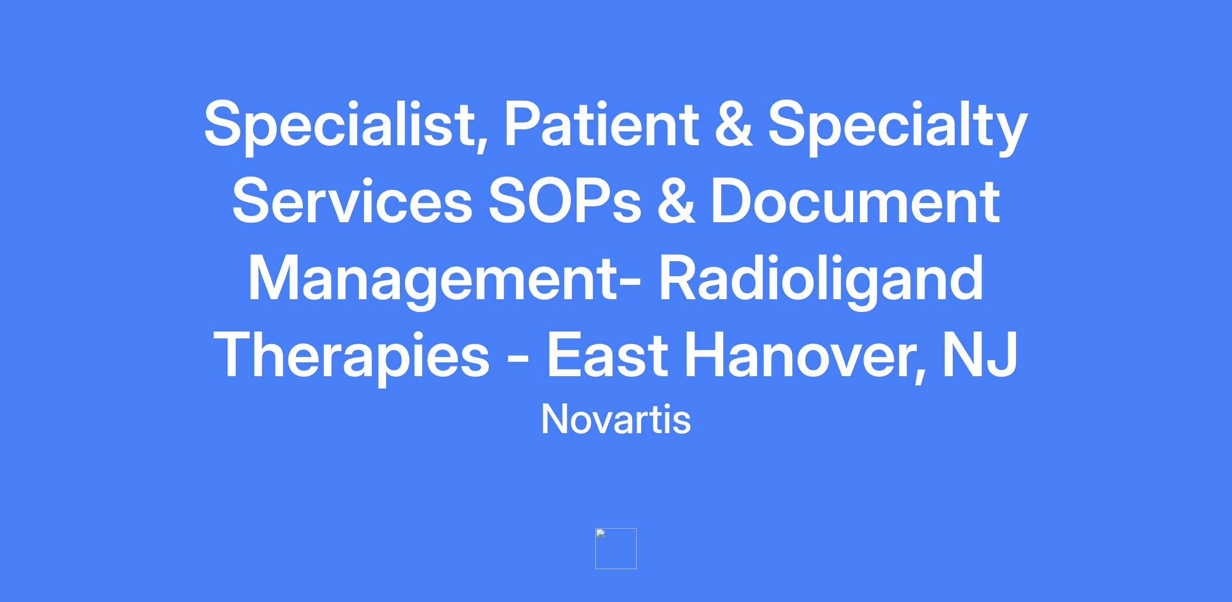 Specialist, Patient & Specialty Services SOPs & Document Management- Radioligand Therapies - East Hanover, NJ