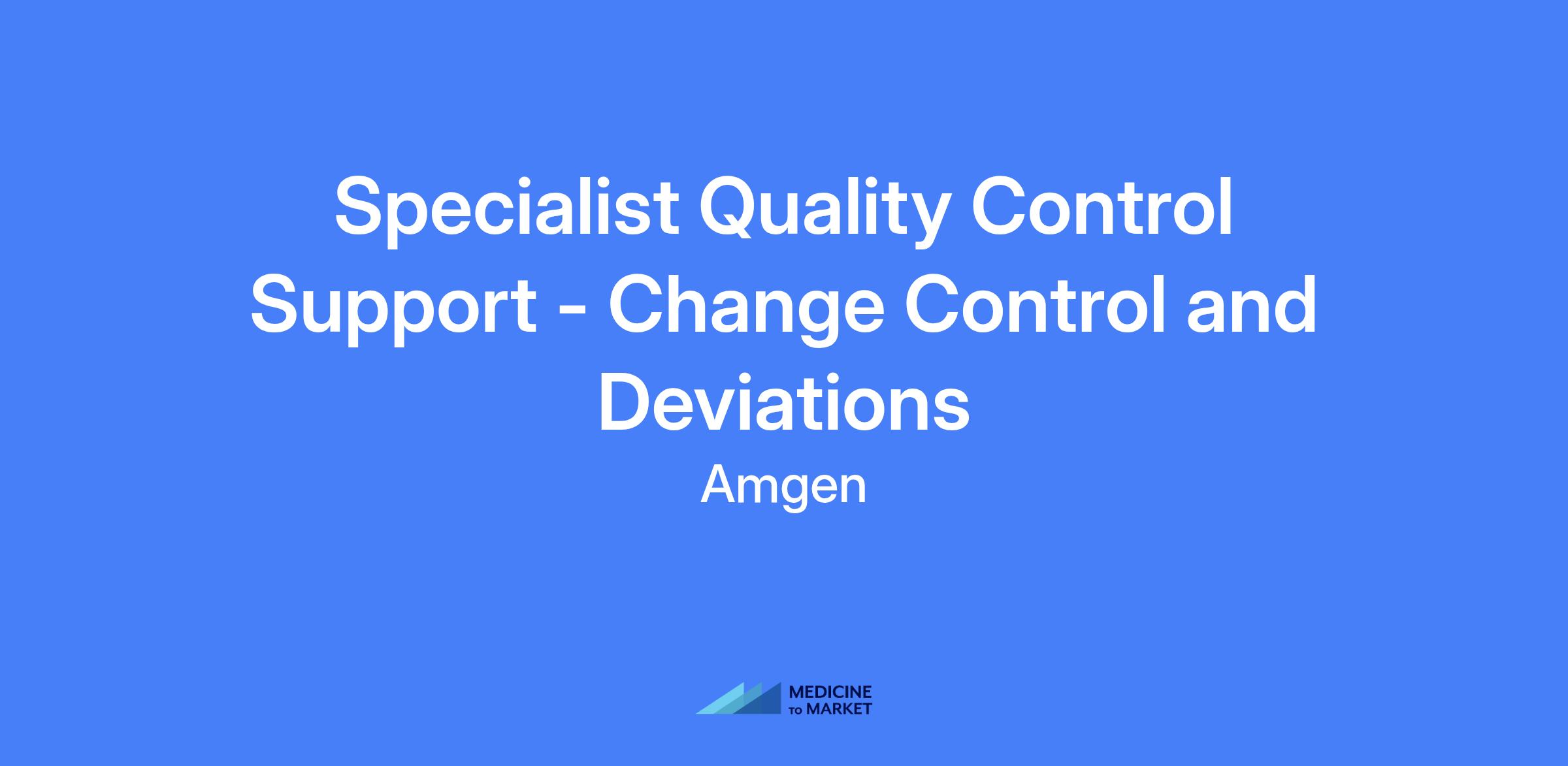 Specialist Quality Control Support - Change Control and Deviations. Lead a team responsible for QC Support, including Stability and Sample Management Teams. Support startup of laboratory electronic systems and equipment, develop a complementary team, and transition to support of Amgen North Carolina commercial product release. Reports to the Director of Quality Control and contributes to Safety, Quality, and Lean Leadership.