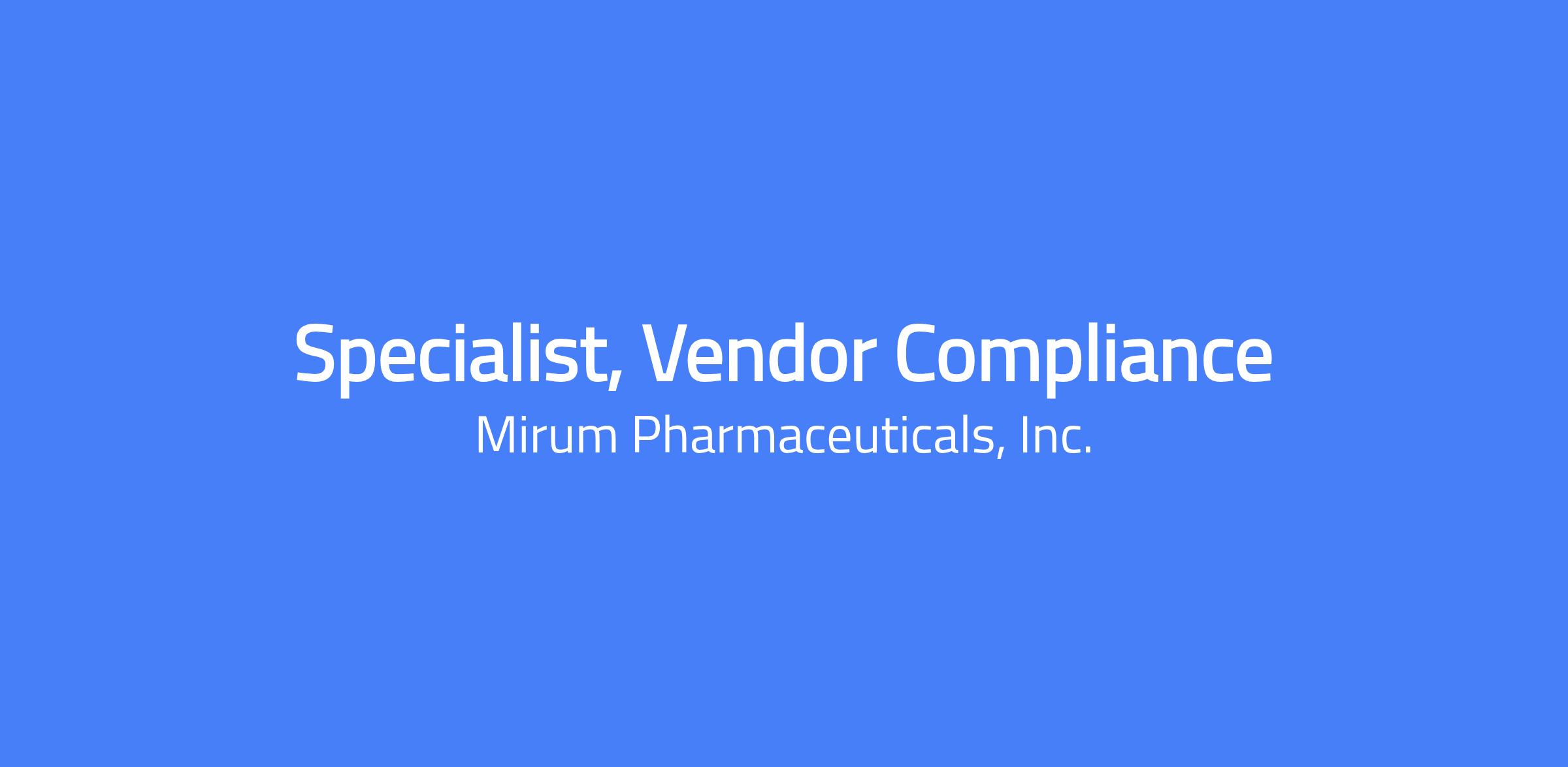The Specialist, Vendor Compliance manages Mirum’s vendor management program activities, including tracking and trending vendor management data, vendor audit management, CAPA follow-up, and capturing metrics related to vendor management. The role supports SOP revisions to sustain the organization and assists with maintaining the eQMS system as it relates to vendor and audit management.