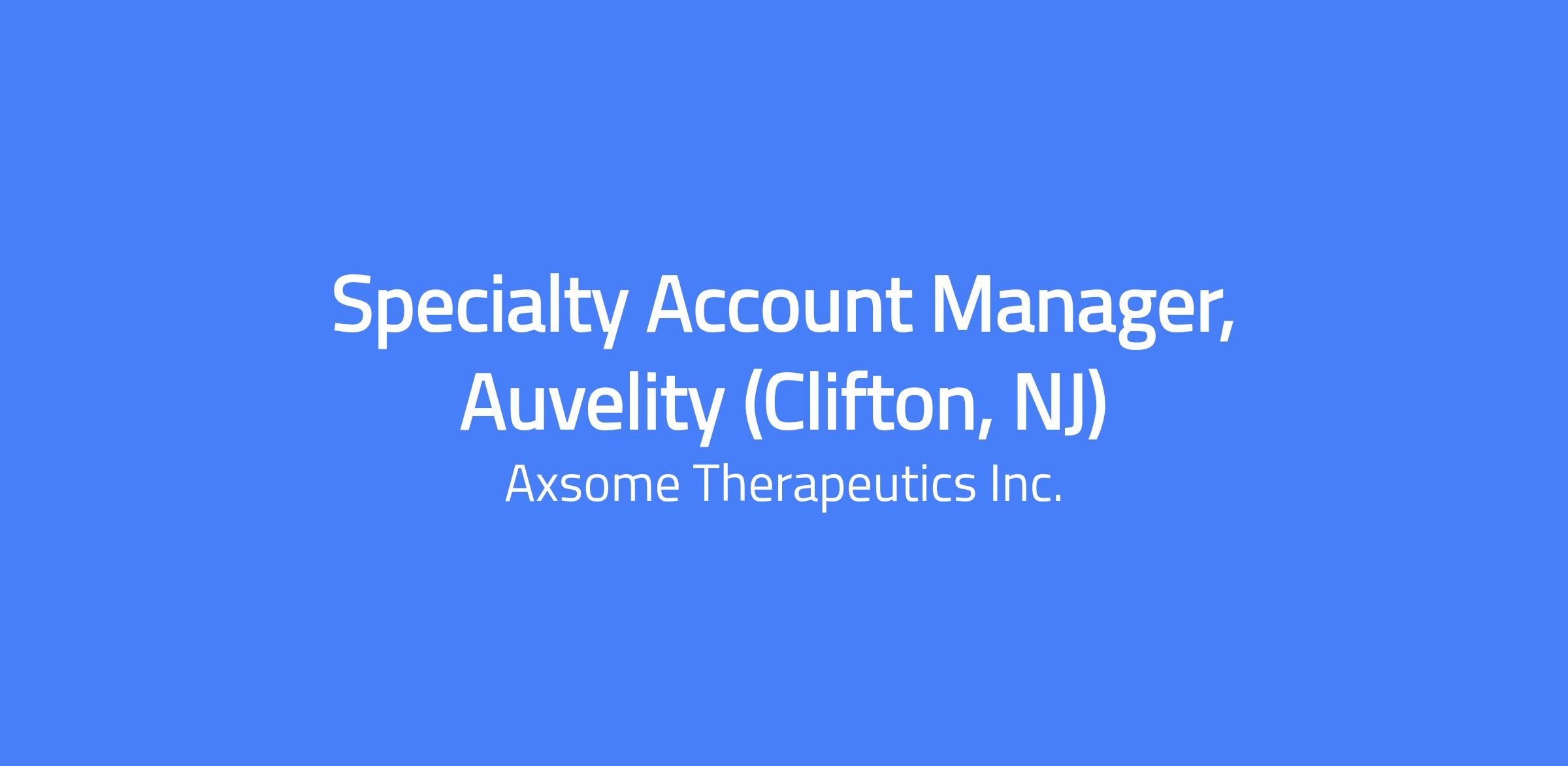 Specialty Account Manager, Auvelity (Clifton, NJ)