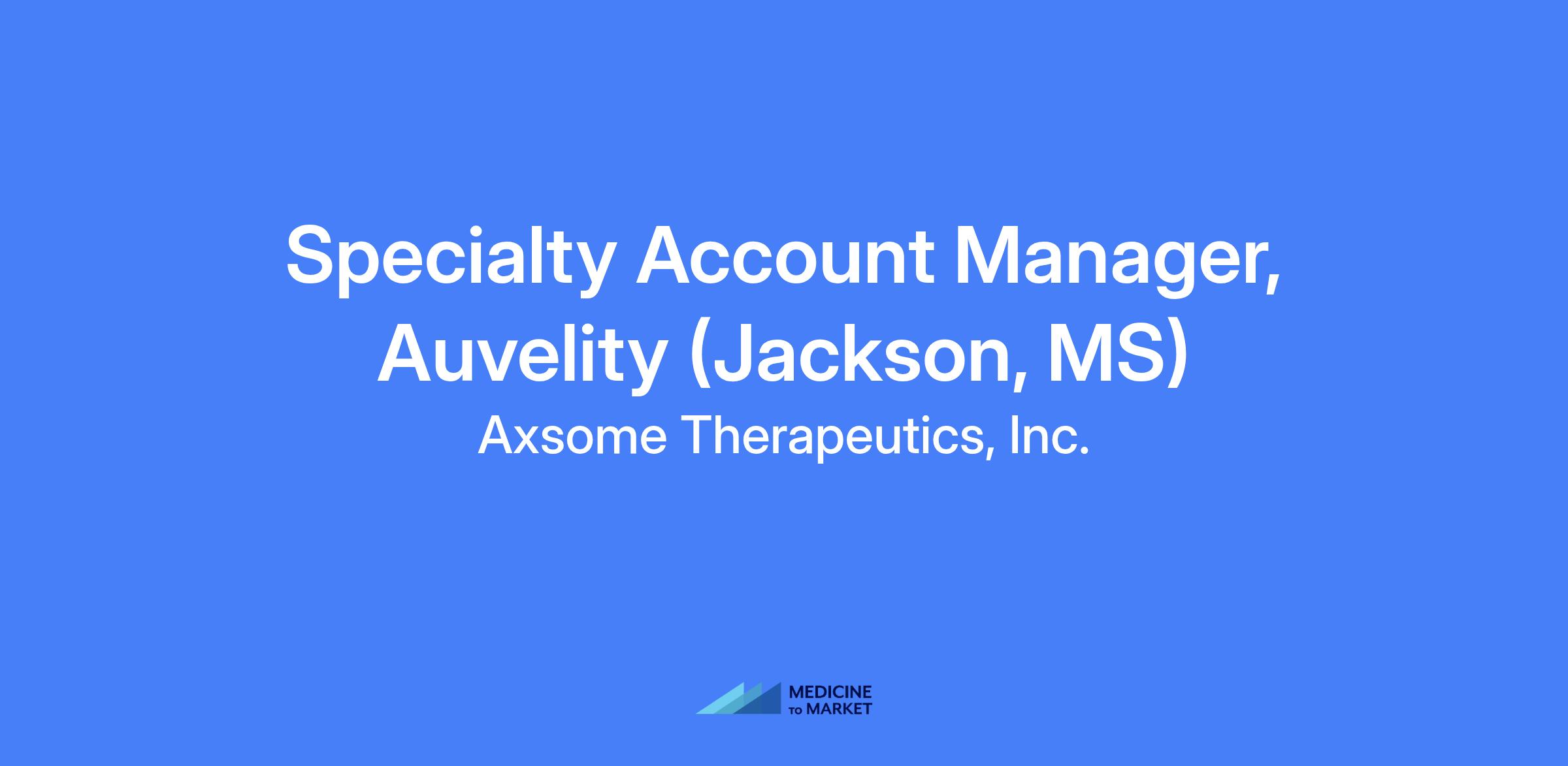 Axsome Therapeutics seeks a Specialty Account Manager (SAM) to execute commercial activities for assigned geographies, establish relationships with customers and ensure successful promotion of AUVELITY for major depressive disorder in adults and potential future indications. This role is field-based and will require gaining access to customers in a clinic or hospital setting while also maximizing engagement through digital channels. The SAM will be a disease category expert and product champion, providing account management support and insight into the local landscape and future marketplace trends.