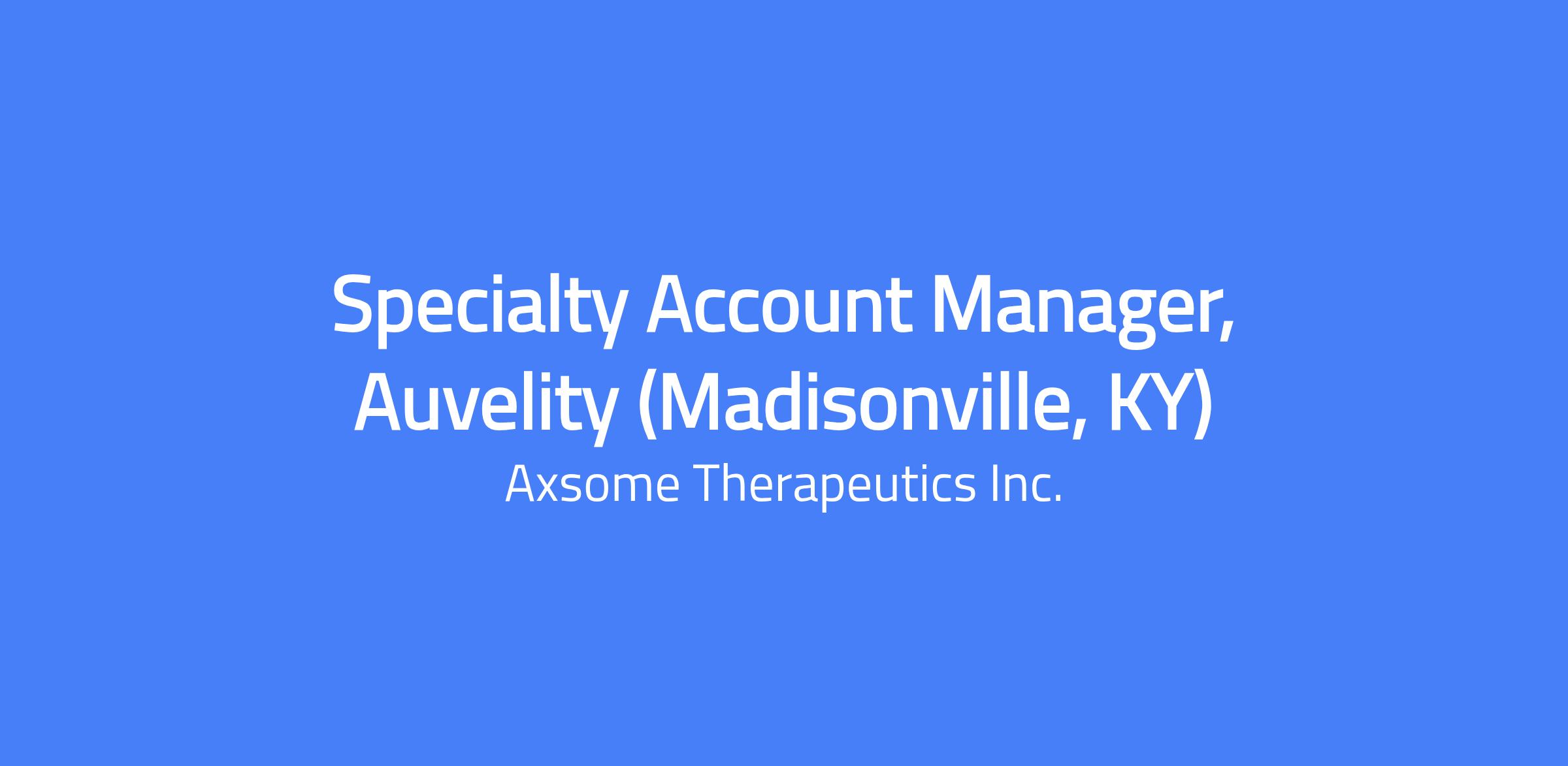 Specialty Account Manager, Auvelity (Madisonville, KY)
