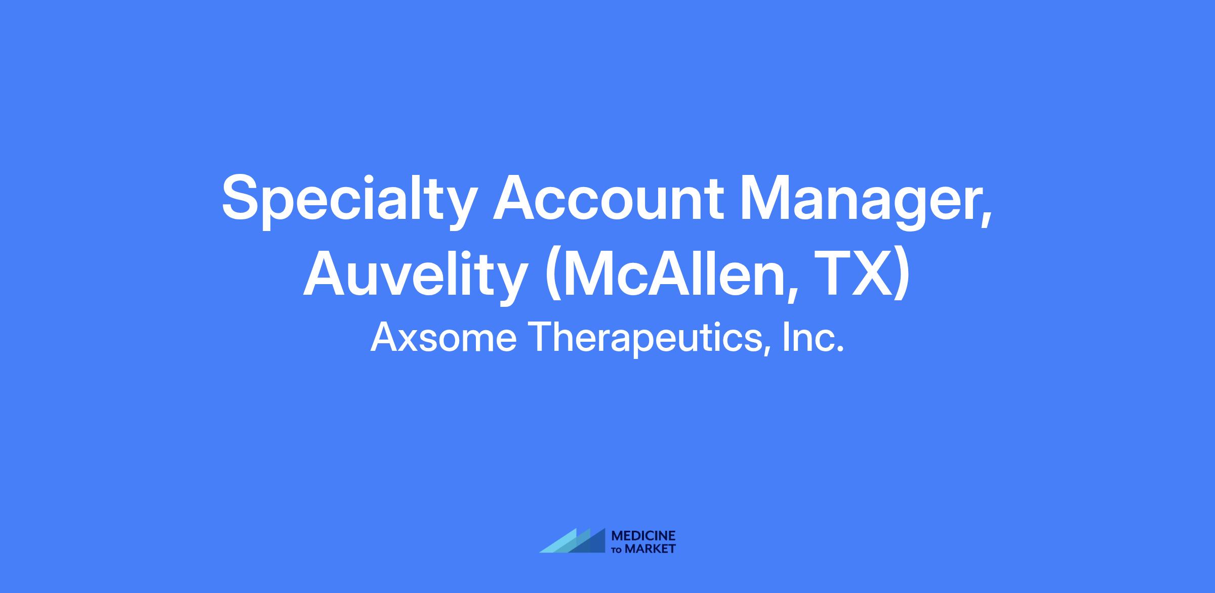 Specialty Account Manager to execute commercial activities for assigned geographies and promote AUVELITY for major depressive disorder in adults, with potential future indications. Field-based role requiring access to customers in clinic or hospital settings and engagement through digital channels. You will be a disease category expert and product champion, providing account management support and insights on the local landscape.
