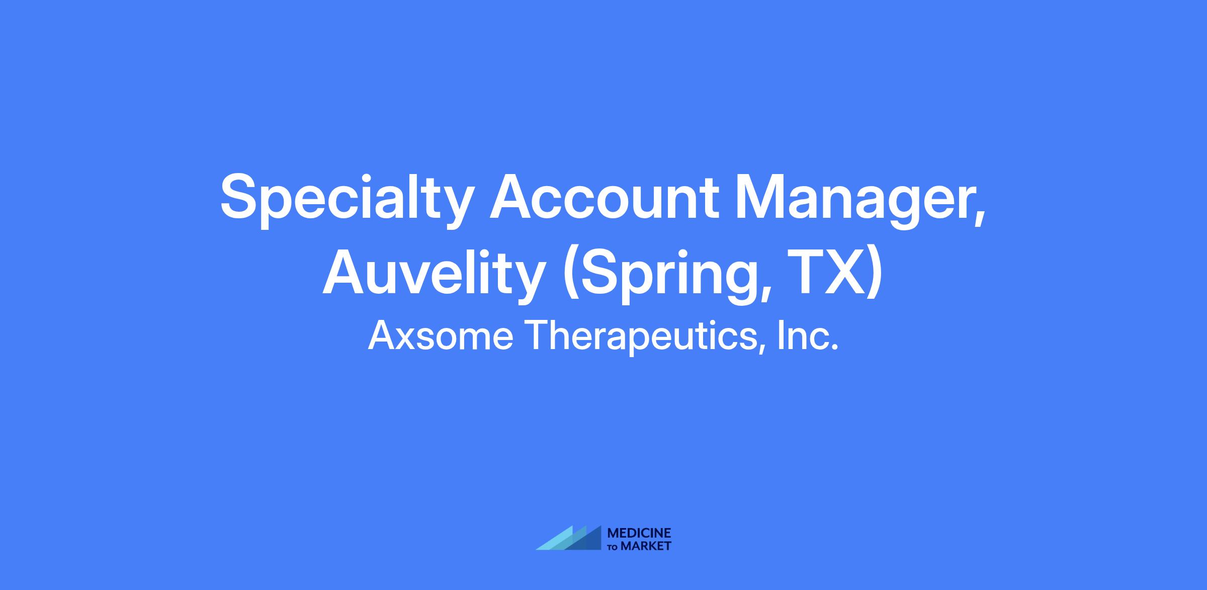 Specialty Account Manager to execute commercial activities for assigned geographies, establish relationships with customers and ensure successful promotion of AUVELITY for major depressive disorder in adults and potential future indications. Field-based role requiring access to customers in clinic or hospital settings while maximizing engagement through digital channels. Territory-focused role with disease category expertise and product champion responsibilities.