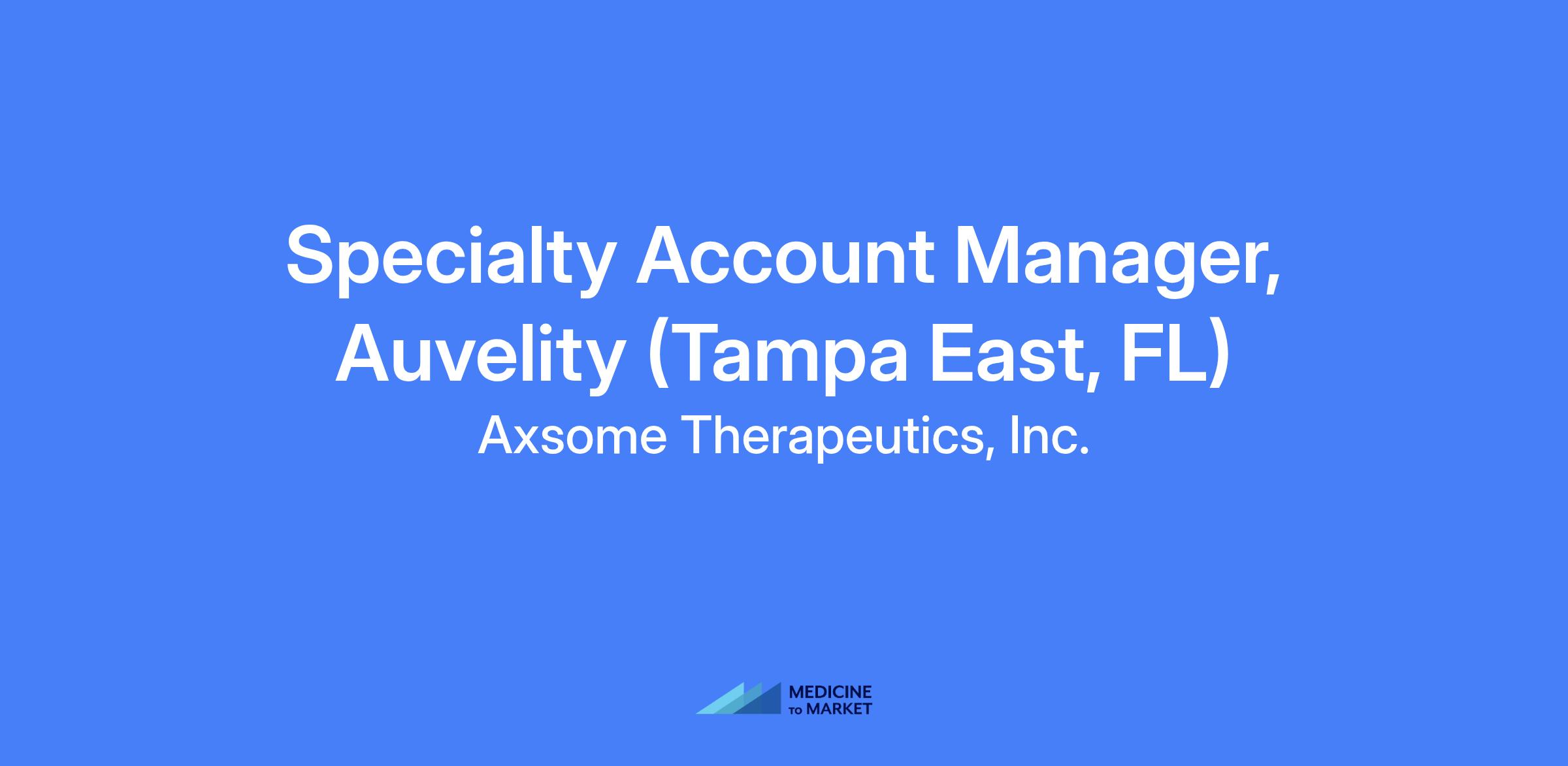 Location: Tampa East, FL. The Specialty Account Manager (SAM) will execute commercial activities for assigned geographies, promote AUVELITY for major depressive disorder in adults and potential future indications, and establish relationships with customers in clinic or hospital settings while engaging through digital channels.