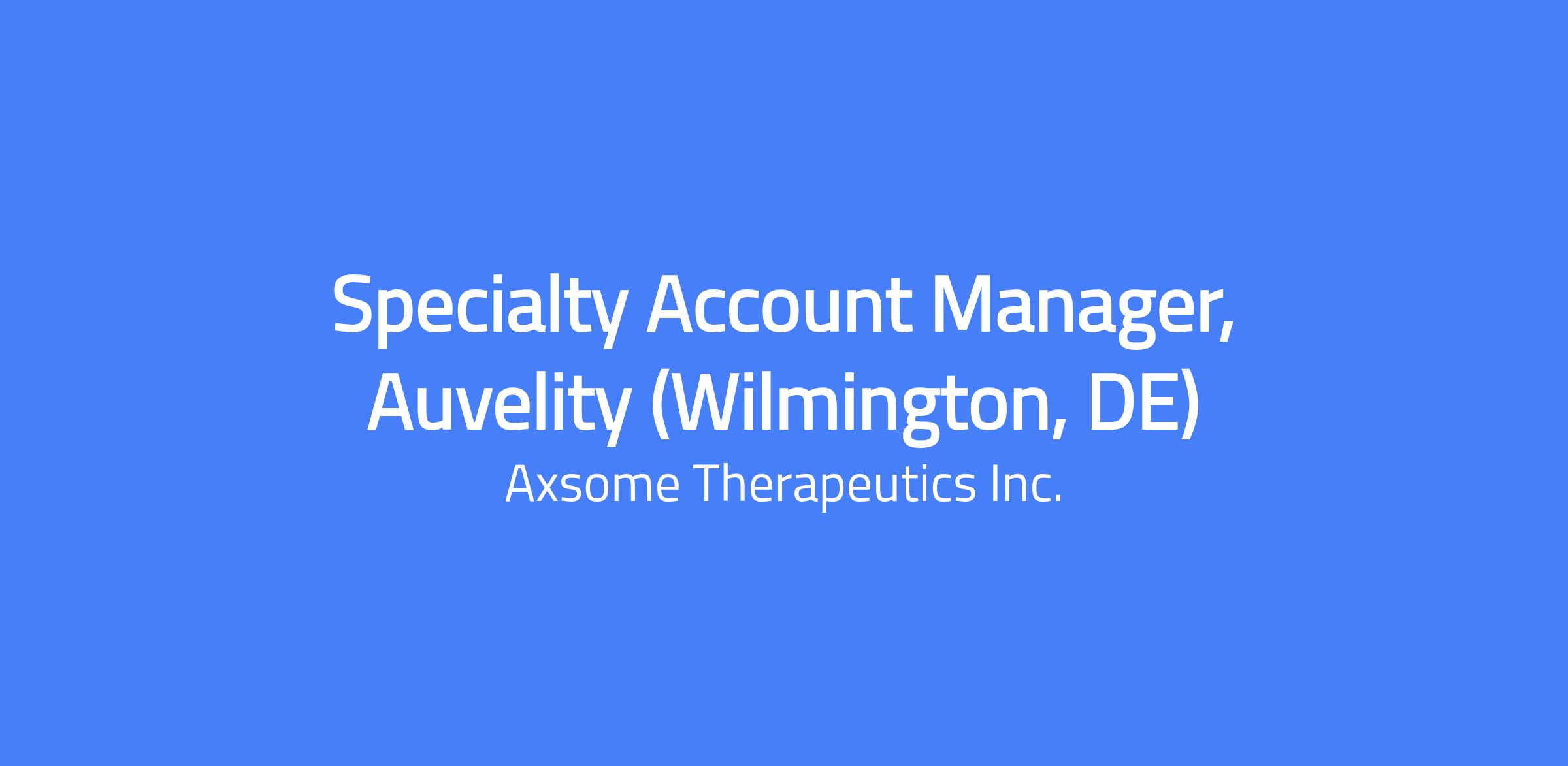 Specialty Account Manager, Auvelity (Wilmington, DE)