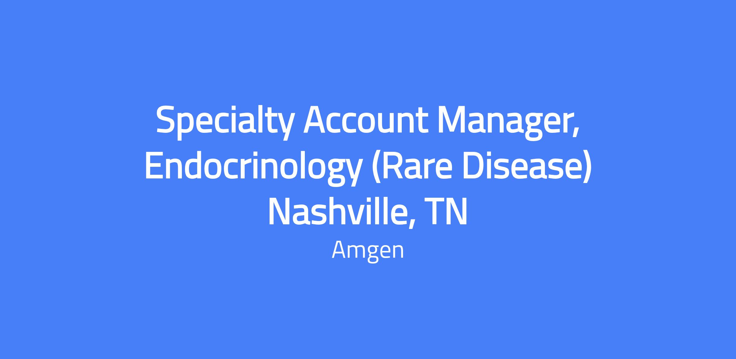 Specialty Account Manager, Endocrinology (Rare Disease) Nashville, TN