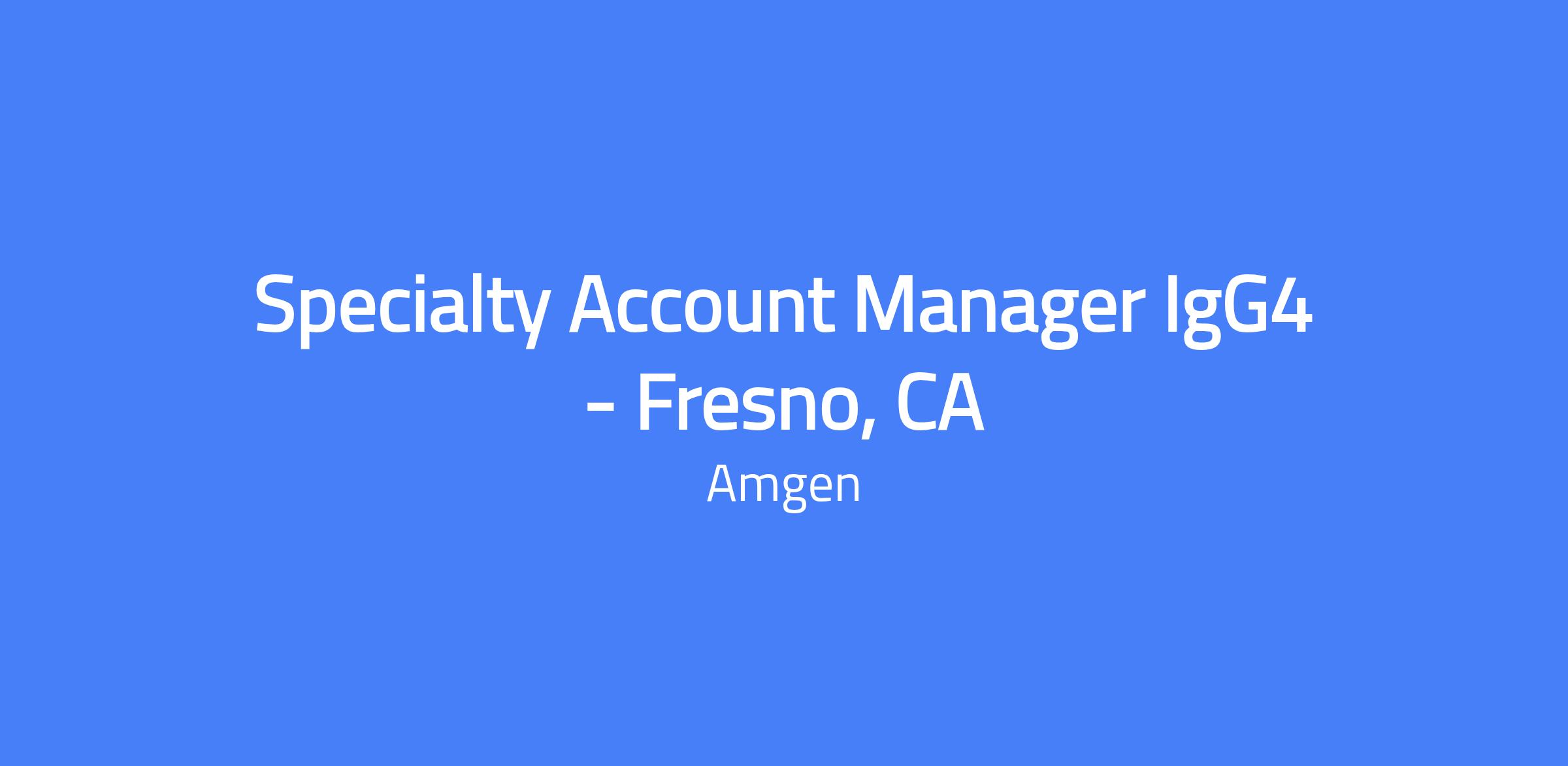 Specialty Account Manager IgG4 – Fresno, CA. Represent UPLIZNA to physicians and health care professionals, establish product sales, and perform total territory account management within the designated geography. Serve as central account manager to drive product demand and coordinate relevant field teams, while building strong customer relationships and addressing account needs.