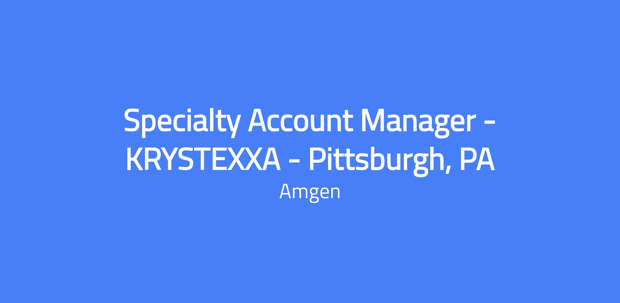 Territory: Pittsburgh, PA – Charleston, WV. Specialty Account Manager for KRYSTEXXA, responsible for representing KRYSTEXXA to physicians and health care professionals, establishing product sales, and performing total territory account management. Acts as central account manager to drive product demand and coordinate field teams to address account needs.