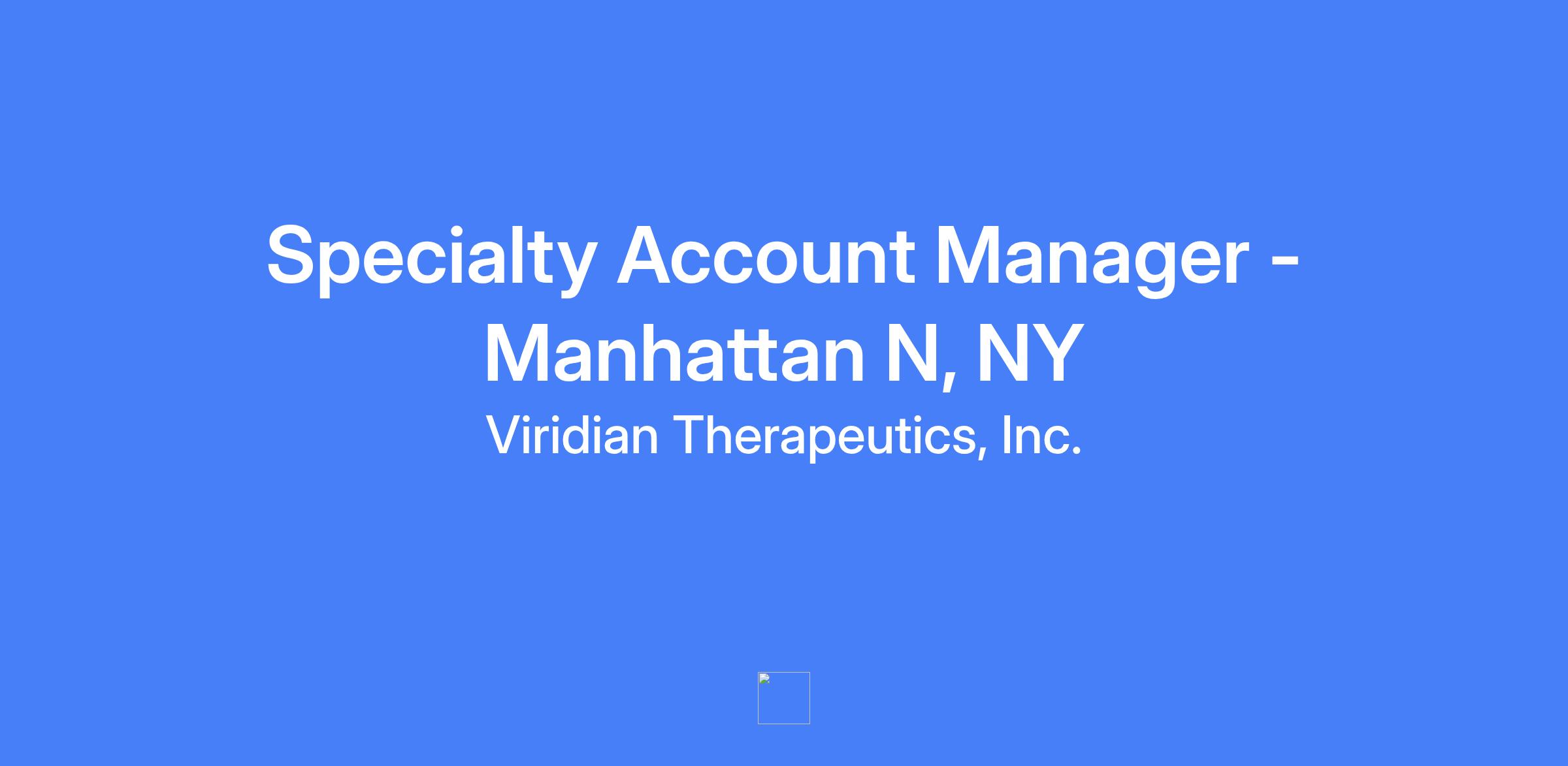 Reporting to the Regional Sales Director, the Specialty Account Manager will play a pivotal role in Viridian’s first commercial launch. This position is responsible for driving performance within a defined territory, aligned with regional and national objectives. Success will be achieved through strategic business planning, tactical execution and cross-functional collaboration. The SAM will partner with their RSD and internal teams, including, Market Access, Field Medical, Marketing, Commercial Operations, and Sales Training, to ensure strategic alignment, seamless customer experiences, and best-in-class account management. This is a critical role with the opportunity to contribute in a meaningful way to Viridian’s transition to a fully operational commercial organization. This role is fully remote. Consistent travel within the sales territory is required and to company meetings as necessary throughout the year. Applicant must reside in the territory they are supporting to be considered for the role. This territory is anchored in Manhattan N, NY.