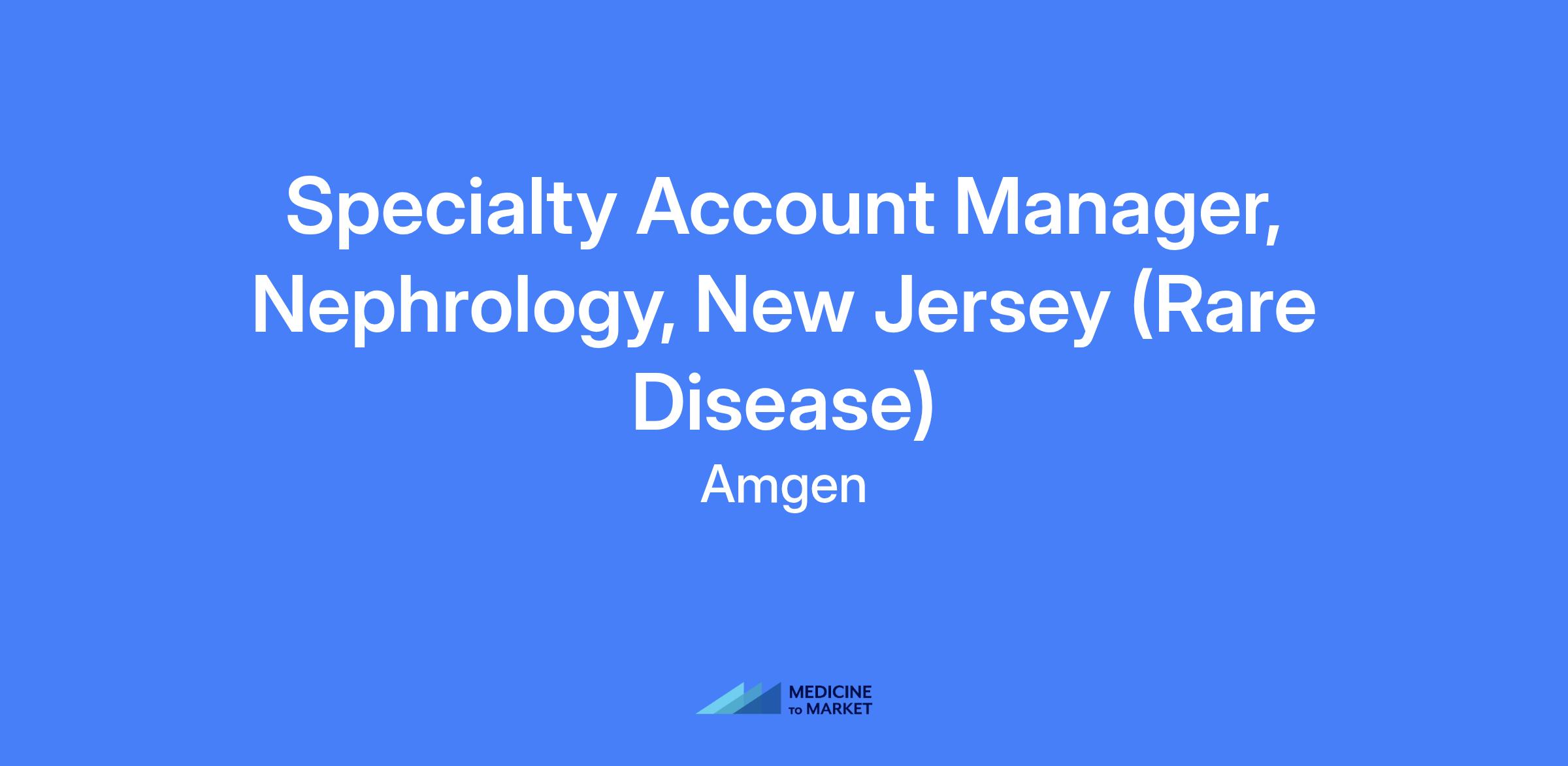 Specialty Account Manager, Nephrology, New Jersey (Rare Disease) โรรฎ represents Amgen products to physicians and healthcare professionals, establishes product sales, and performs total territory account management focusing on patient-centered disease and product education for Rare Disease patients.