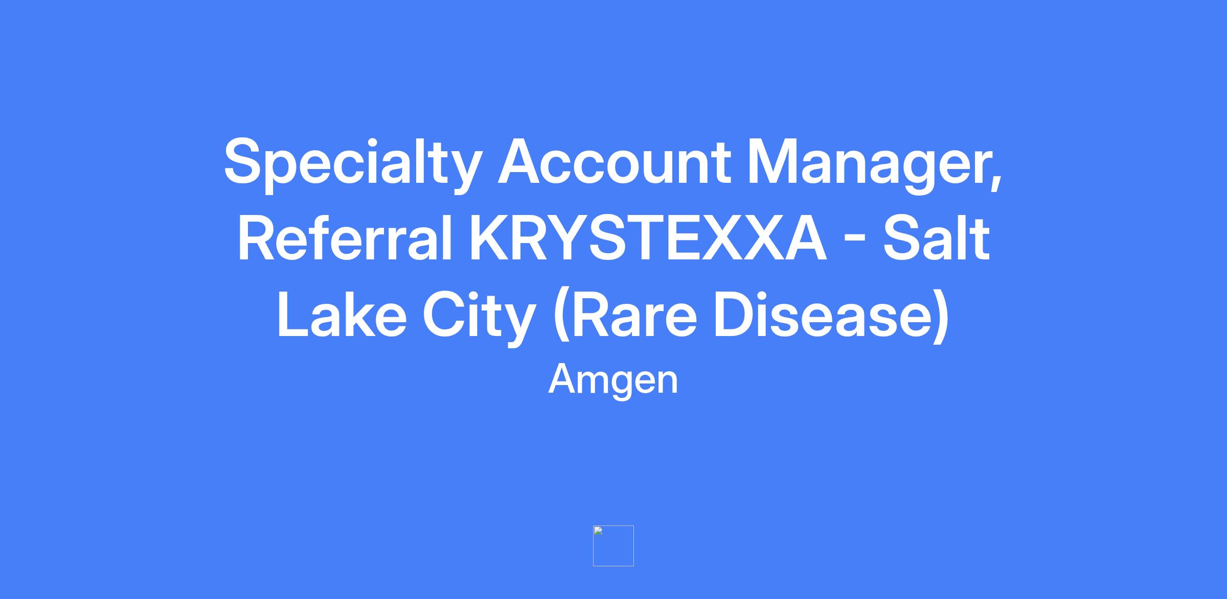 Specialty Account Manager, Referral KRYSTEXXA - Salt Lake City (Rare Disease) – Territory covers Salt Lake City. Represent Amgen's Rare Disease products to Primary Care/FP/GP/IM, Podiatry, and Orthopedic physicians and healthcare professionals; drive Biotech/Infusion product sales, increase referrals to Rheumatology and Nephrology, and perform total territory account management.