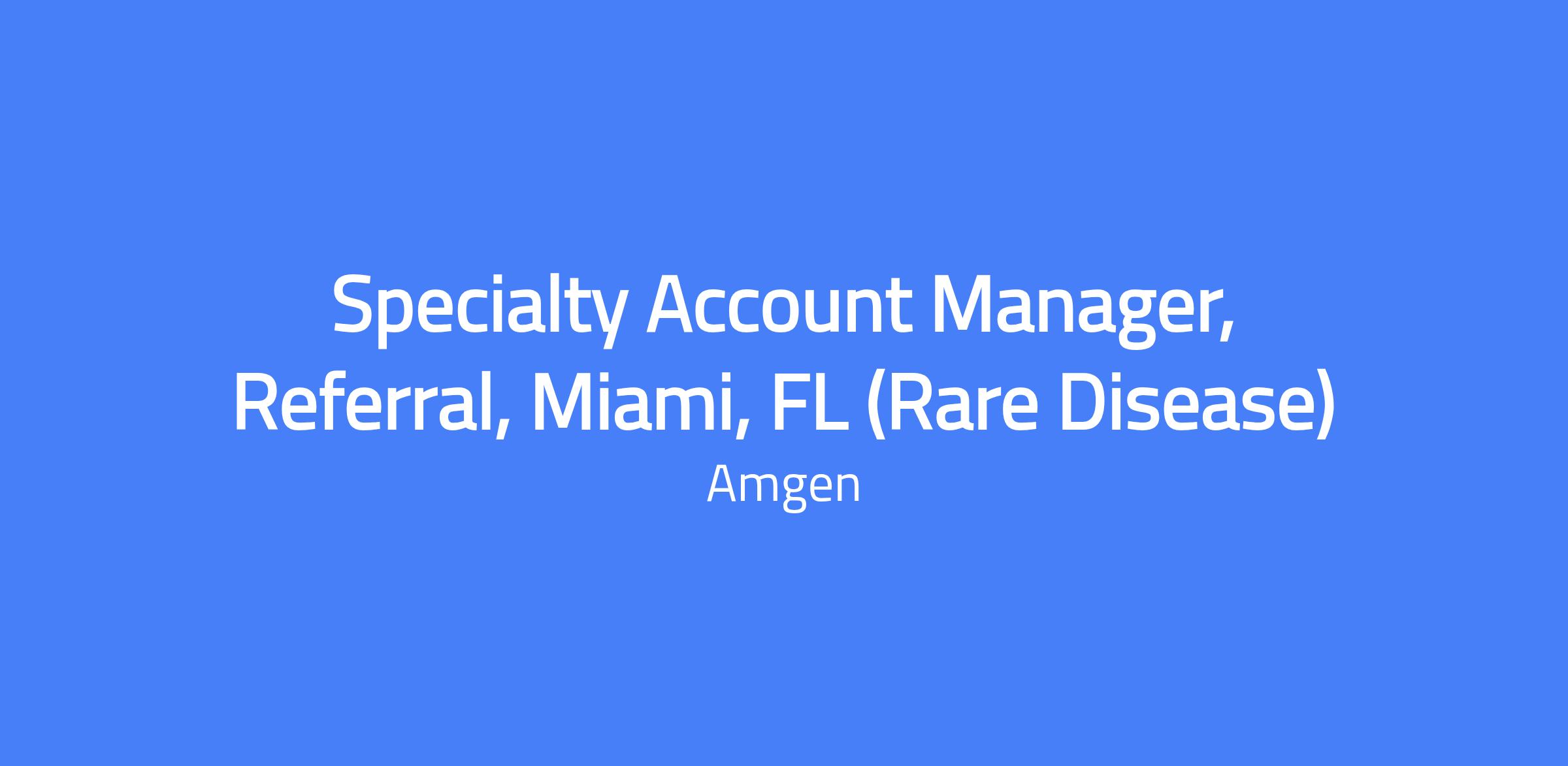 Specialty Account Manager, Referral, responsible for representing Amgen's Rare Disease products to Primary Care/FP/GP/IM, Podiatry, and Orthopedic physicians and healthcare professionals, establishing Biotech/Infusion product sales, increasing referrals for appropriate patients to the Rheumatology and Nephrology specialties, and performing total territory account management. The Referral (SAM) will work strategically and collaboratively across the existing sales teams to uncover unmet needs in the uncontrolled gout patient population that exists outside of Rheumatology and Nephrology to enhance the current business in markets where we have significant presence of KRYSTEXXA advocates as well as highly efficient centers of excellence. The Referral (SAM) is also responsible for providing account management support to accounts within a specific geography in the PCP, Podiatry, and Orthopedic marketplace with a focus on issues specific to patient identification, disease state education, and referrals to local Rheumatologists and Nephrologist.