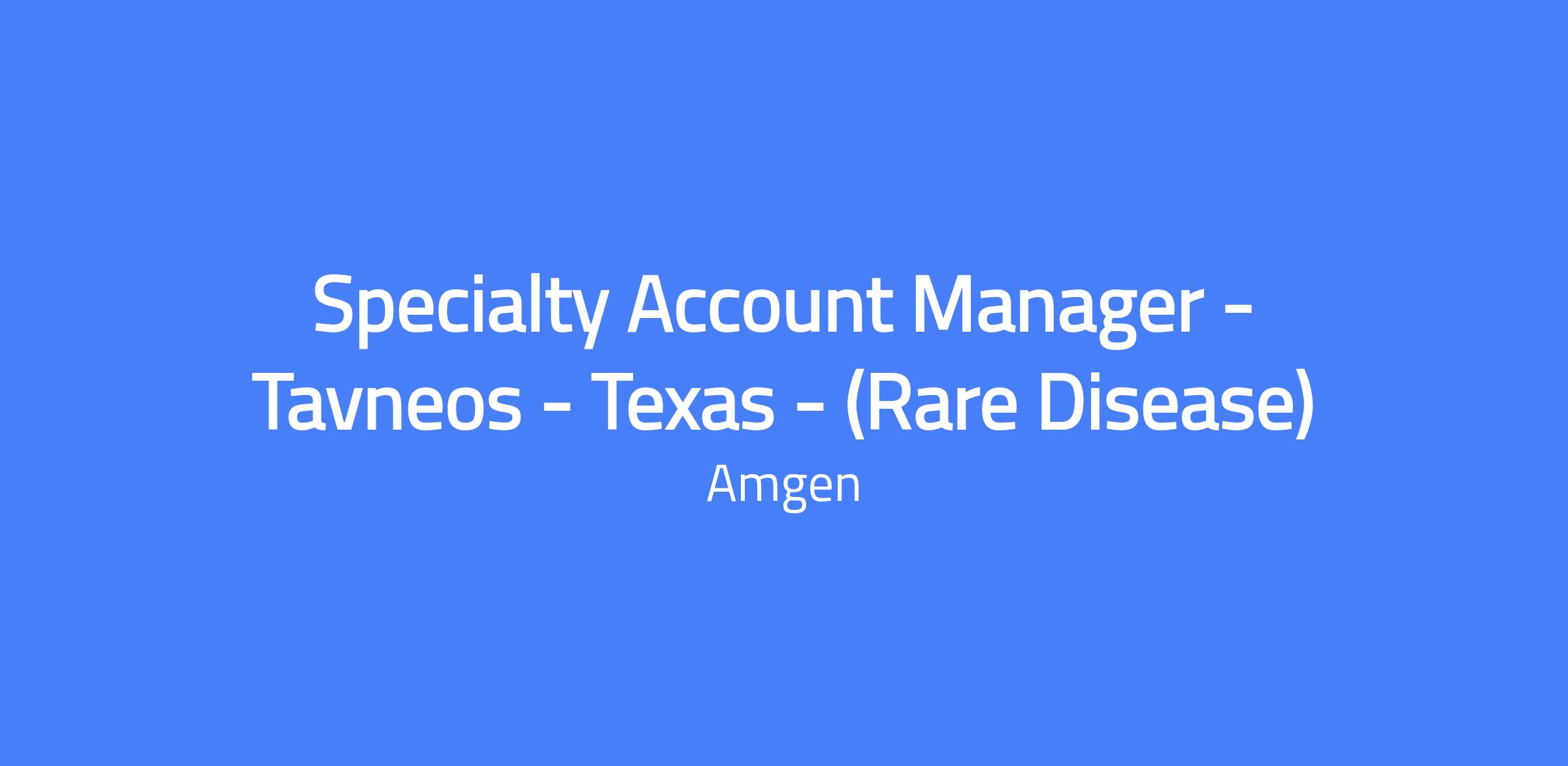 Specialty Account Manager - Tavneos - Texas - (Rare Disease)