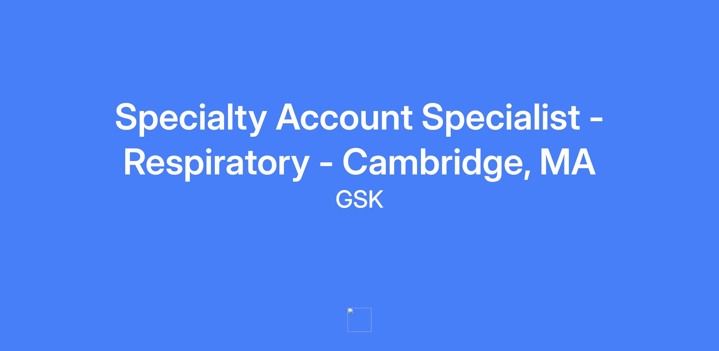 Specialty Account Specialist - Respiratory - Cambridge, MA. This role provides Scientific Knowledge, Business Acumen, and Customer Engagement expertise to specialist customers in support of a GSK biologic product, with emphasis on understanding reimbursement and distribution landscape and delivering product education and strategic account plans.