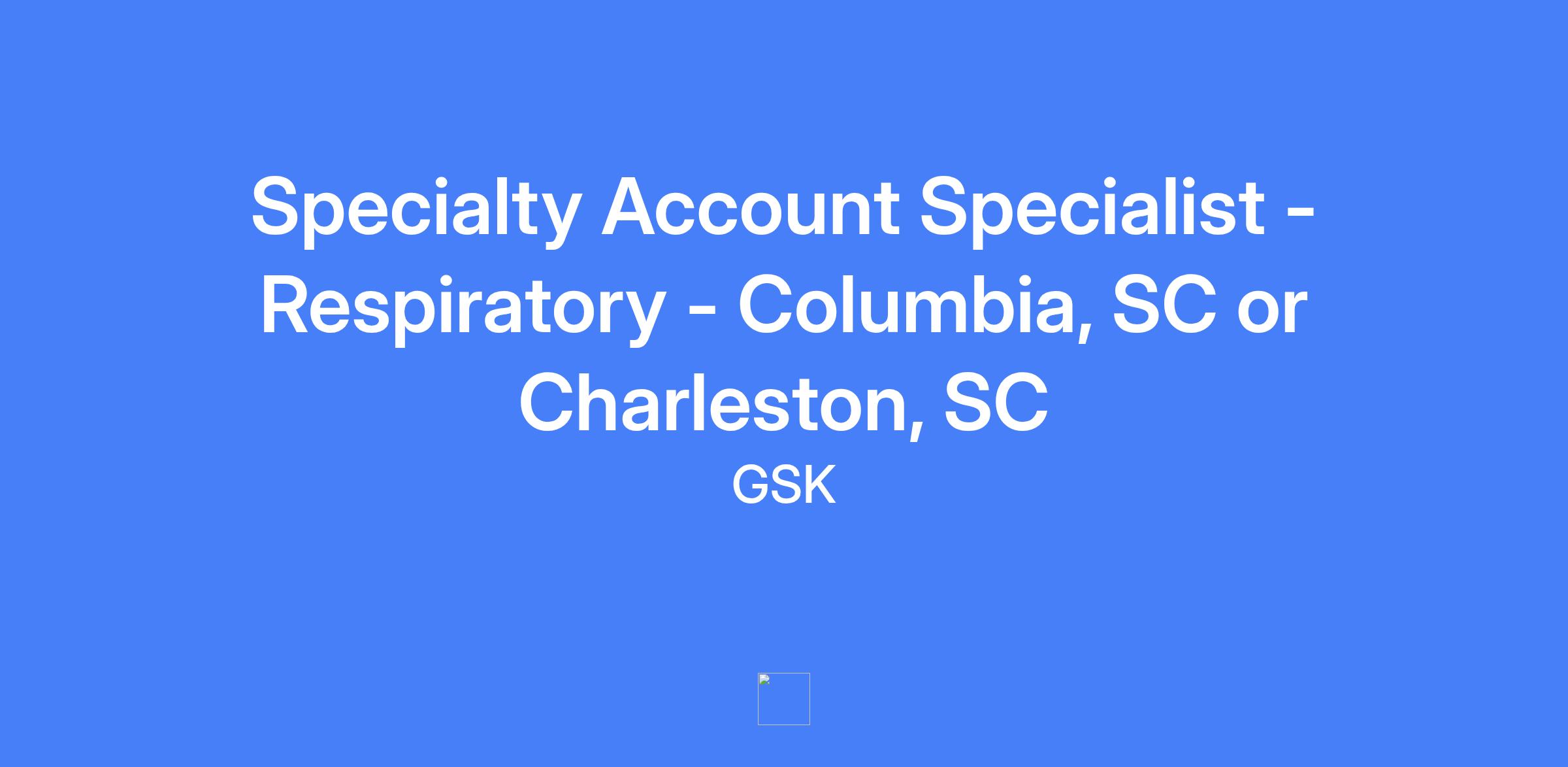 Specialty Account Specialist - Respiratory - Columbia, SC or Charleston, SC