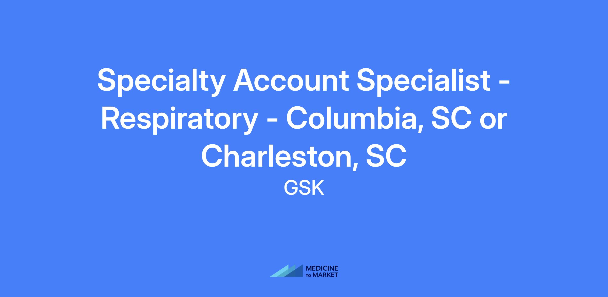Specialty Account Specialist - Respiratory - Columbia, SC or Charleston, SC. This role provides scientific knowledge, business acumen, and customer engagement to specialist customers in support of a GSK biologic product, with focus on respiratory therapies and related market access considerations. The position involves developing account strategies, managing resources, and delivering product education while adhering to compliance guidelines.