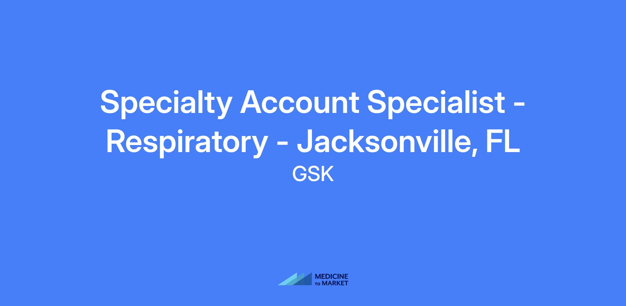 Specialty Account Specialist - Respiratory - Jacksonville, FL. This role provides scientific knowledge, business acumen, and customer engagement expertise to specialist customers in support of a GSK biologic product, with responsibilities including understanding the reimbursement and distribution landscape, maintaining up-to-date therapeutic knowledge, delivering product education, and developing account-specific strategies to generate sales.